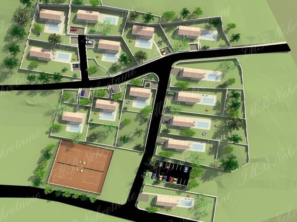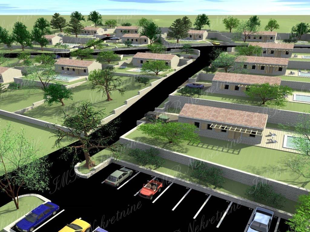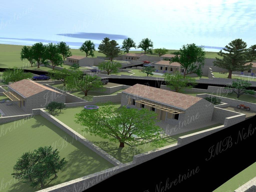 CIJENA NA UPIT. Građevinsko zemljište površine 18.500 m2 + ruševini objekt 220 m2 s urednim kolnim pristupom. Mirna i tiha lokacija u zelenoj oazi idealna za seoski turizam koji nudi brojne mogućnosti ili za gradnju 14 villa s bazenom za koje već postoji idejni projekt.