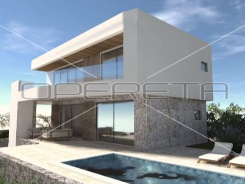 Zemljište površine 448 m2 smjestilo se u Vinišću i dolazi s pravomoćnom građevinskom dozvolom za gradnju moderne kuće s bazenom. Ukupna bruto stambena površina iznosi 141 m2, a neto površina kuće je 119 m2. Bazen, veličine 9,70m x 3,0m, dolazi sa strojarnicom. Komunalni doprinos je plaćen, a gradnja može započeti odmah.