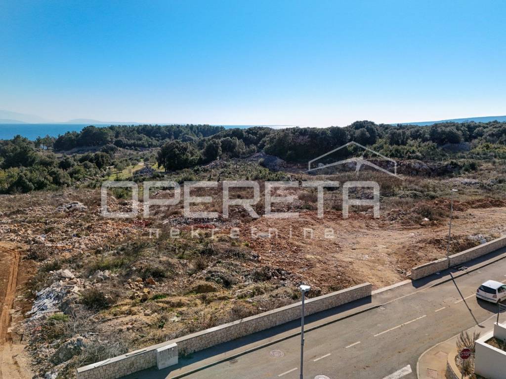 Na uzvisini s otvorenim pogledom prema moru smještena je ova atraktivna građevinska parcela u novom urbanom dijelu grada Krka, okružena modernim vilama i stambenim zgradama.