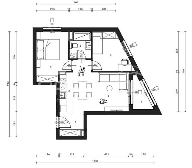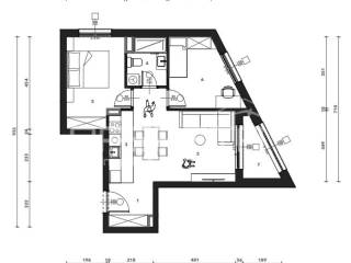 Sastoji se od ulaznog hodnika, kuhinje s blagovaonicom i dnevnog boravka, dvije spavaće sobe, kupaonice i loggie. Uz stan je potrebno kupiti garažno mjesto i spremište.