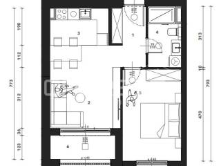 Sastoji se od ulaznog hodnika, kuhinje s blagovaonicom i dnevnog boravka, spavaće sobe, kupaonice i loggie. Uz stan je potrebno kupiti garažno mjesto i spremište.