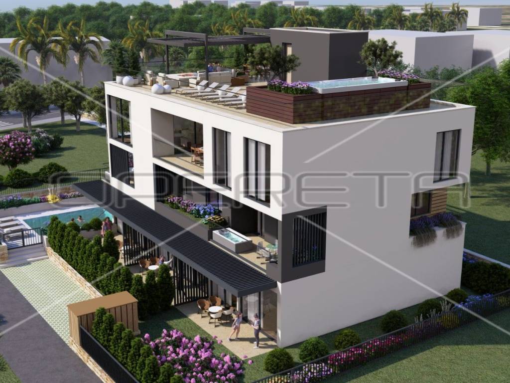 Penthouse in a new building, first row to the sea, 249 m2 NLA, Sukošan