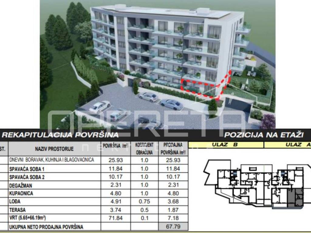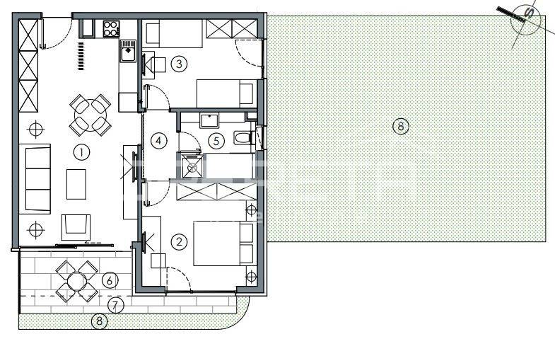 The building will have landscaped gardens around the building and the gardens attached to individual apartments, with planted plants and trees (oleander, laurel, yucca, bamboo, palm trees, cypress, etc.), and a series of other features that will make this building a high-quality property.