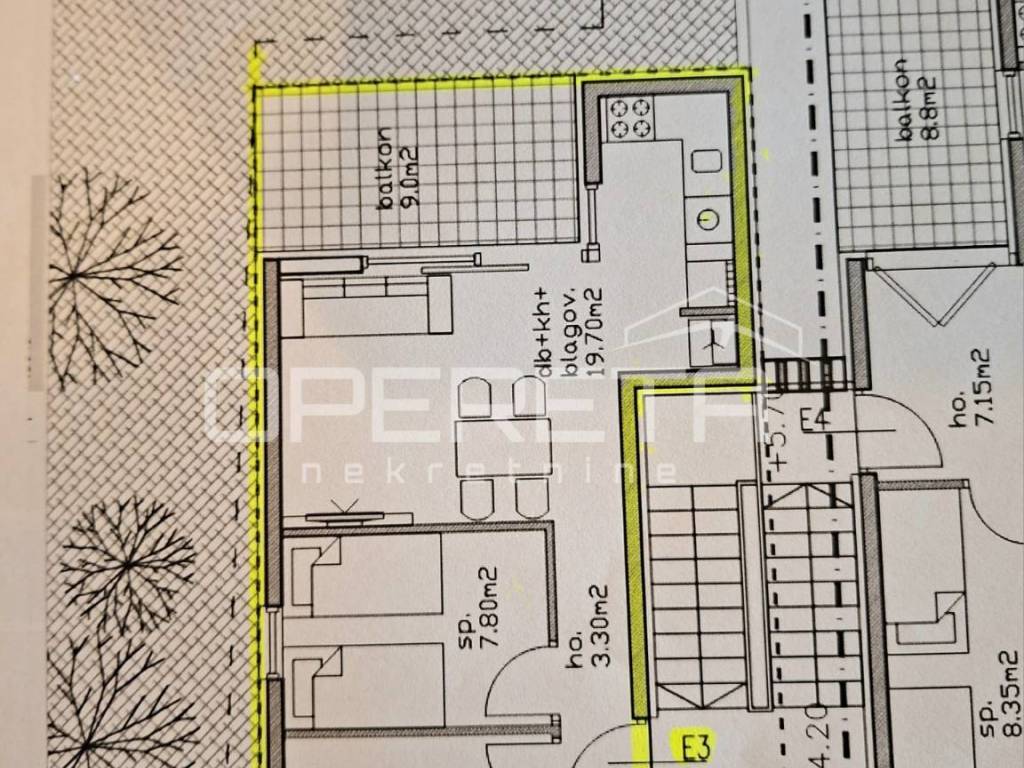 From our offer we highlight an apartment in a quiet location. The apartment has an indoor area of 45.35 m2, a covered terrace of 9 m2, one covered parking space and a storage room of 13.40 m2. It is located on the first floor of a small residential building and consists of a bathroom, 2 bedrooms, a kitchen with a dining room and a living room with access to the terrace. After the calculated coefficient, the E3 apartment has 66.15 m2 Due to its exceptional location, it is ideal for use for tourist purposes or a quiet family life.