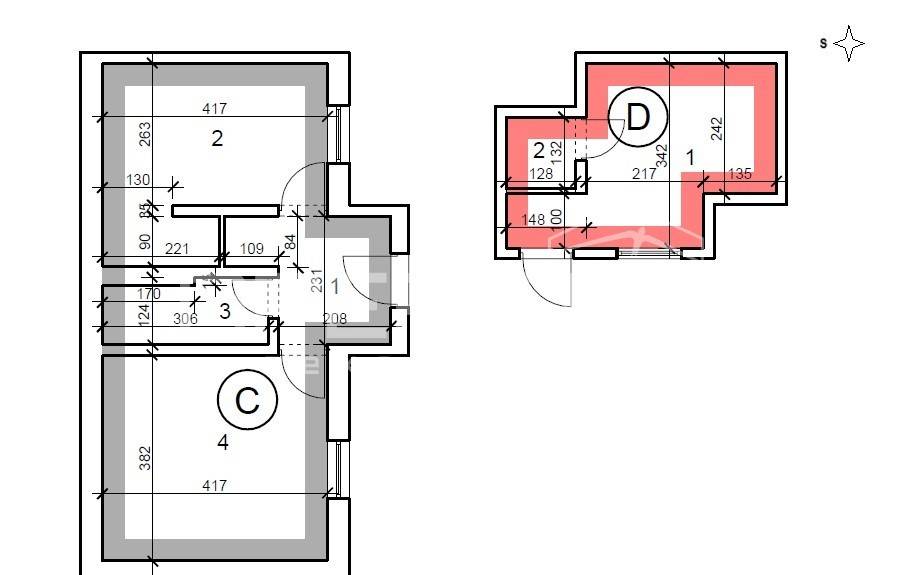 2 stana (42,94m2 - 2sobni + 13,86m2 - 1sobni)