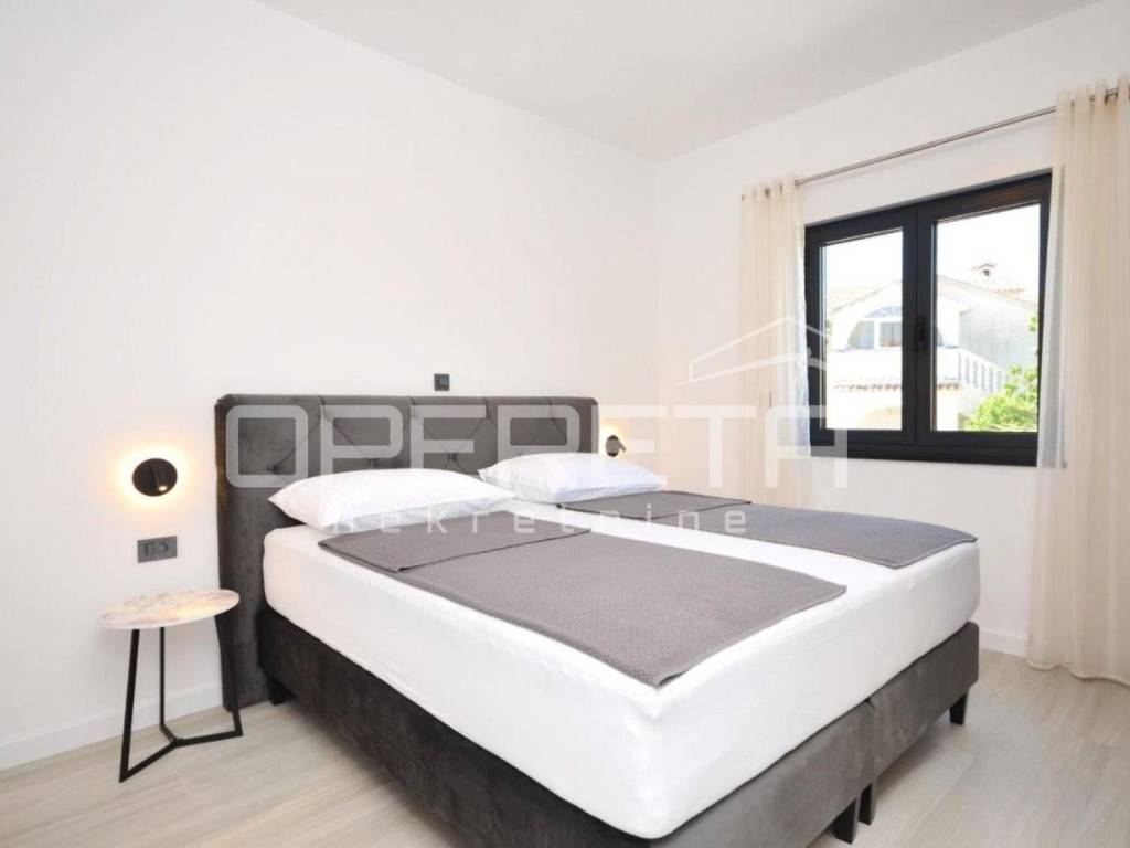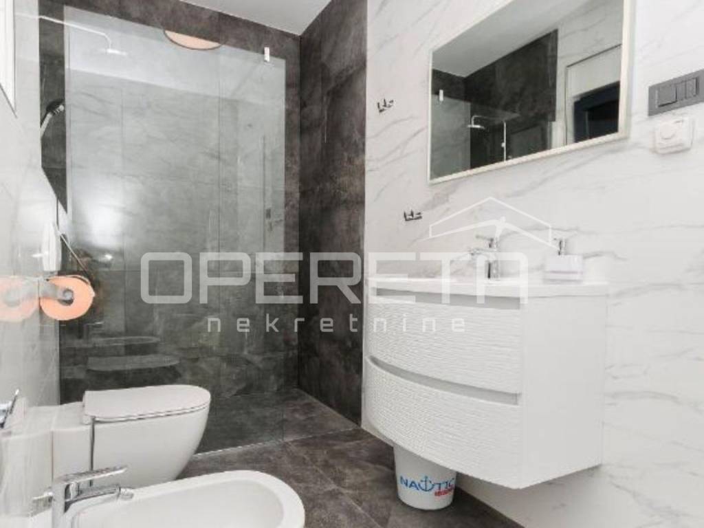 Opremljen je modernim sustavima za ugodan boravak tijekom cijele godine: podnim grijanjem u dnevnim sobama i kupaonicama, električnim podizačima roleta, solarnim panelima, dizalicom topline. Parkirno mjesto osigurano je u dvorištu zgrade.