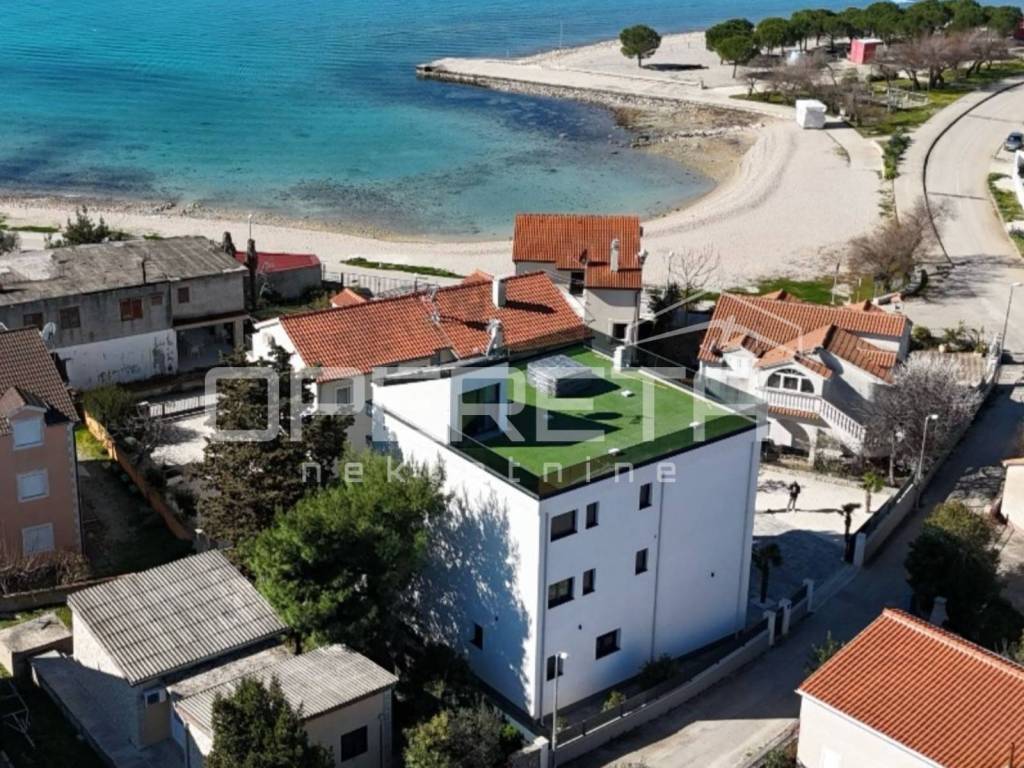 Na mirnoj i izuzetno atraktivnoj lokaciji u Srimi, svega pedesetak metara od mora, nalazi se potpuno uređena i namještena zgrada s 5 apartmana. Stanovi su raspoređeni na 3 etaže, te su u procesu etažiranja.