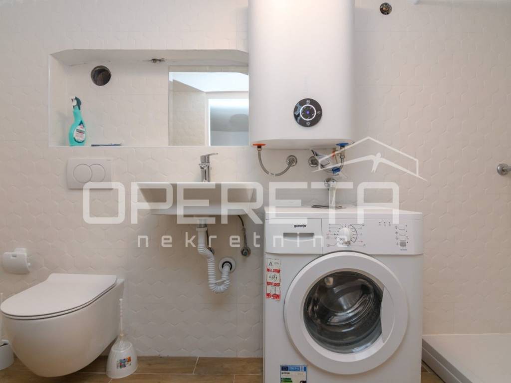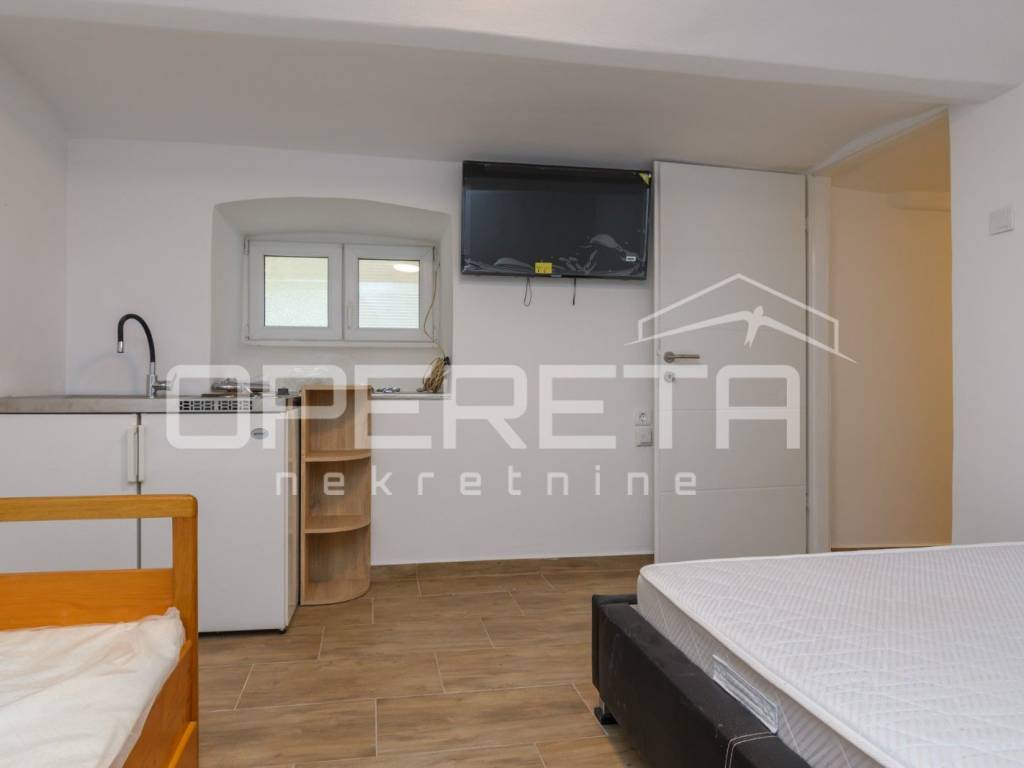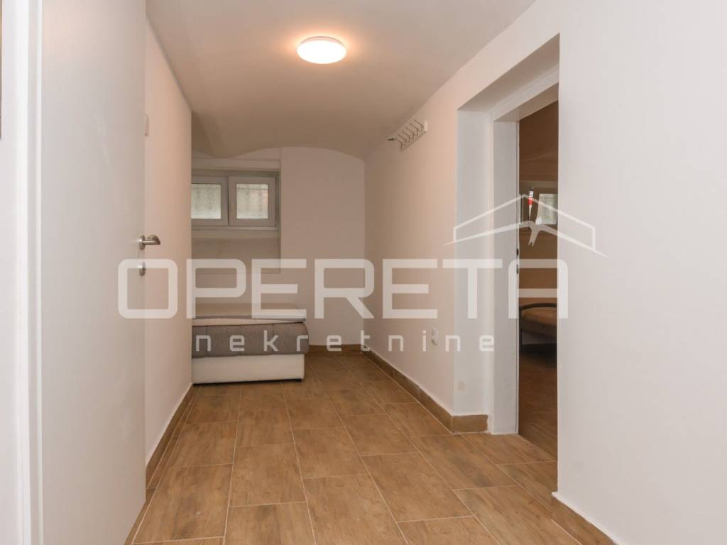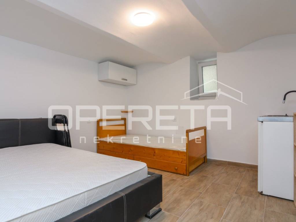 Stan u suterenu od skoro 47m2, koji se sastoji od dvije stambene cjeline, tj. od jedne garsonijere i manjeg 2sobnog stana. Oba su kompletno renovirana u ovoj godini (sve kupaonice, zidovi, unutarnja stolarija, ulazna vrata, podovi), te su trenutno iznajmljena.
