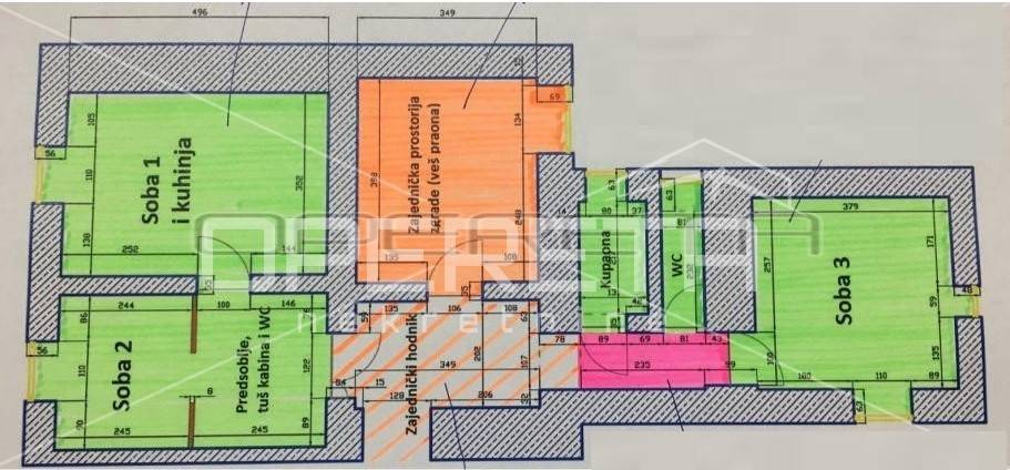 Stanovi se nalaze jedan preko puta drugog, no vlasnički se u ZK izvatku vode kao jedan stan.