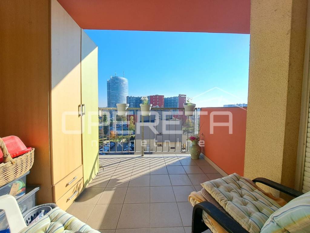 PRODAJA, STAN, ZAGREB, ŠPANSKO, 109m2, 4s komforni dvoetažni stan, u kvalitetnoj zgradi iz 2006. g ( Tehnika ). Stan se prostire na 5. i 6. etaži zgrade od 6 katova, s liftom. Na prvoj etaži je ulazni hodnik, odvojena kuhinja i ostava, gostinjski WC, te prostrani svijetli dnevni boravak s blagovaonicom i izlazom na natkriveni balkon, s prekrasnim otvorenim pogledom. Na gornjoj etaži se nalaze 3 spavaće sobe od koje jedna ima izlaz na natkriveni balkon s jednako lijepim pogledom, te kupaonica s WC-om. Stanu pripada i spremište od 4 m2.