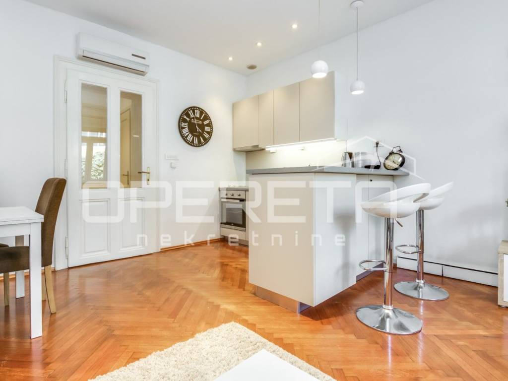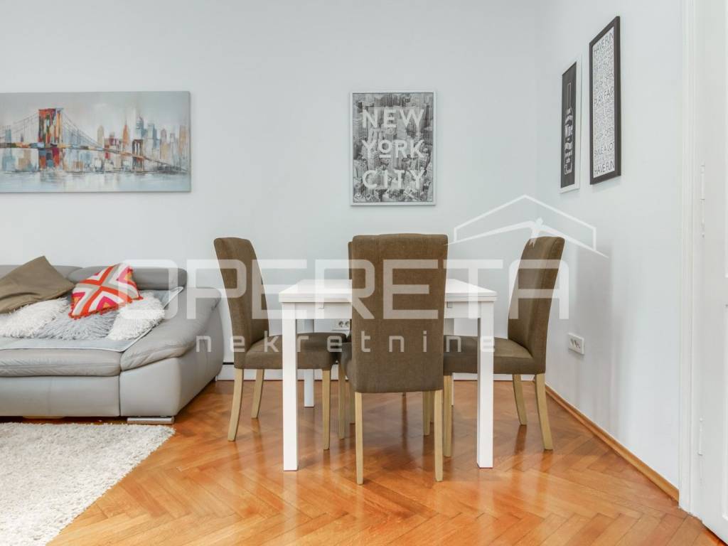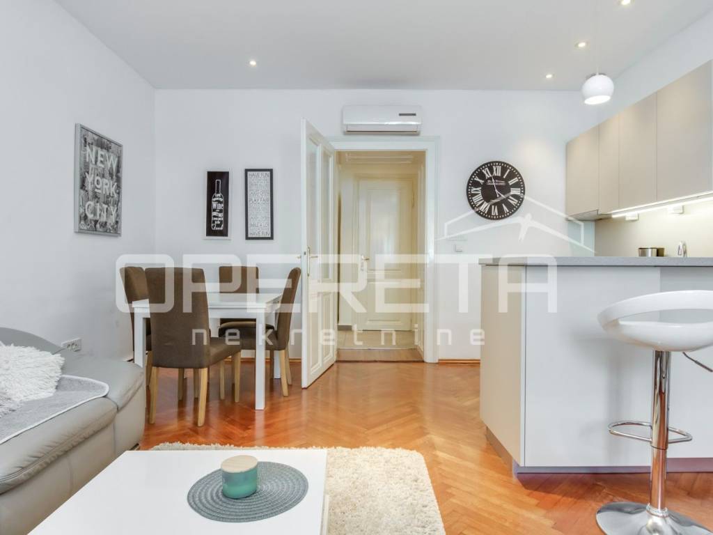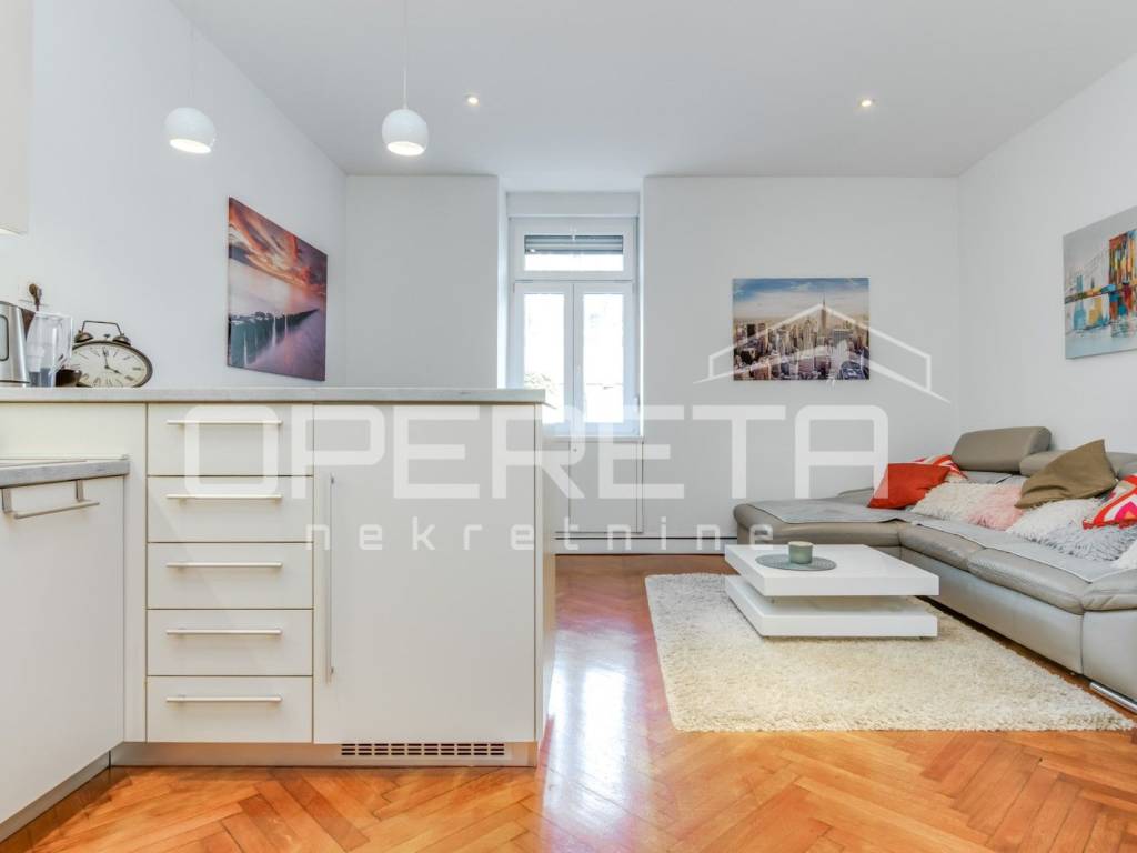 RENT, APARTMENT, CENTER, DRAŠKOVIĆEVA, 43.12m2 A two-bedroom apartment for rent, recently renovated and furnished on the high ground floor. The apartment consists of a kitchen with dining room and living room, bathroom, toilet, bedroom. All essential amenities needed for comfortable living are nearby.