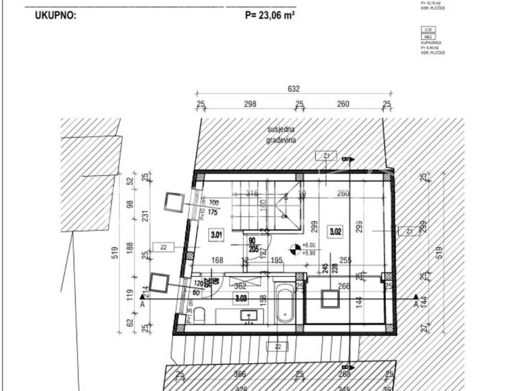 Šibenik, center house under construction, 3 floors, terrace