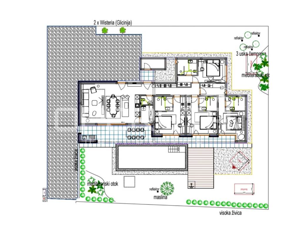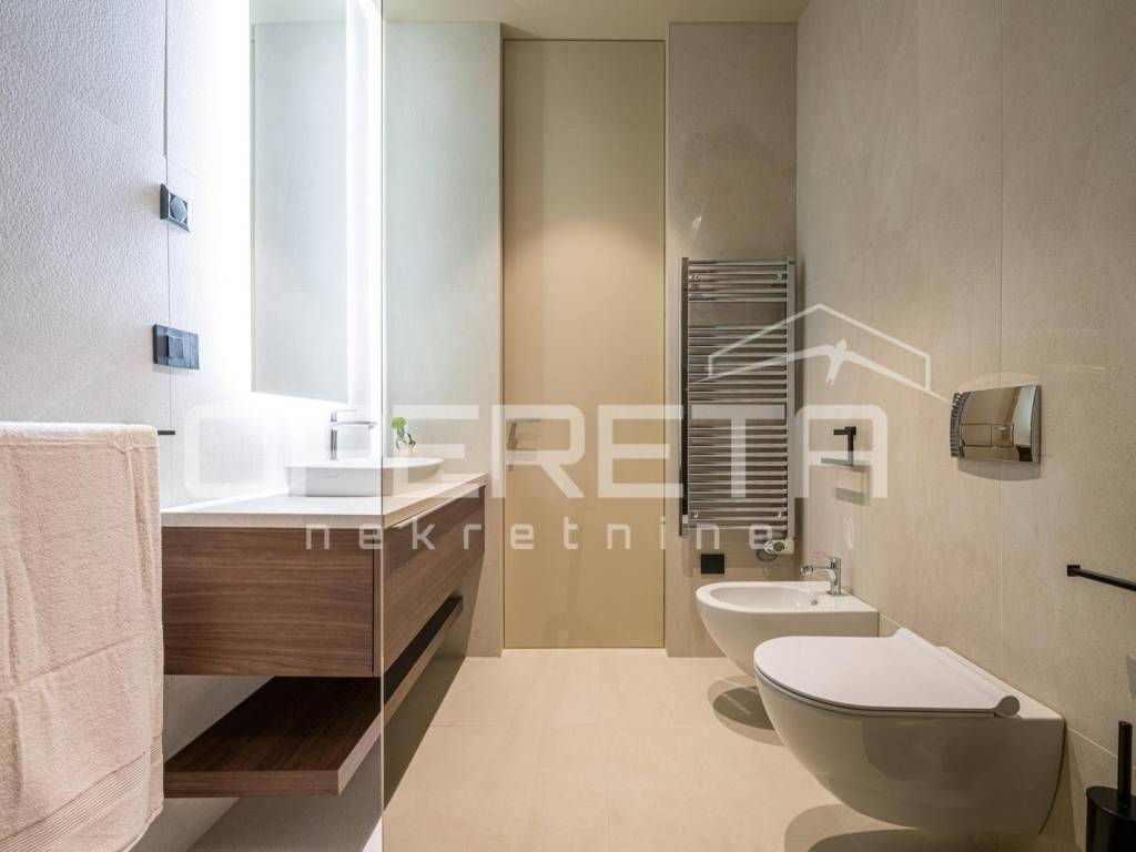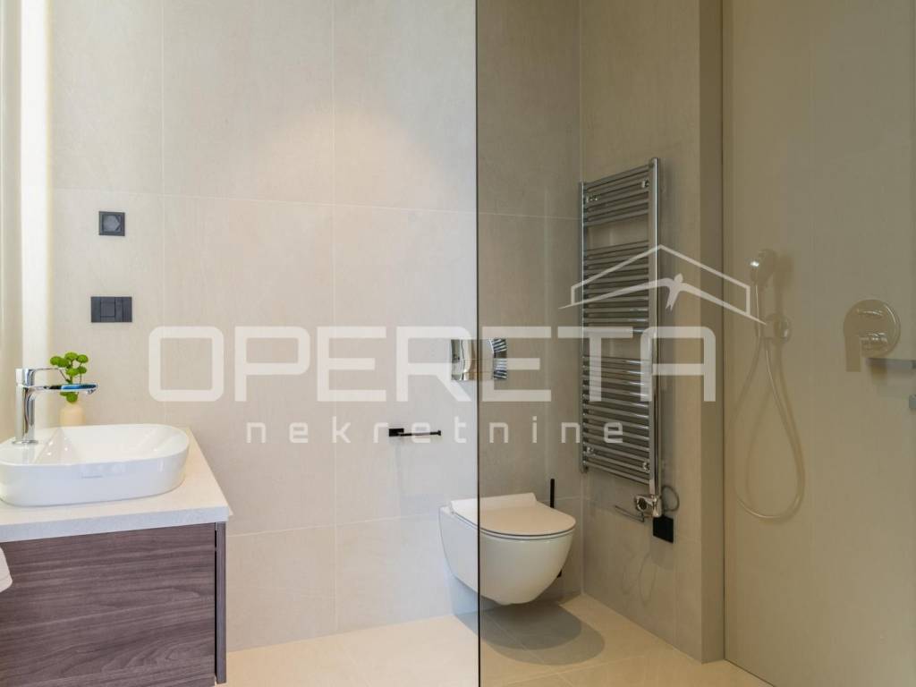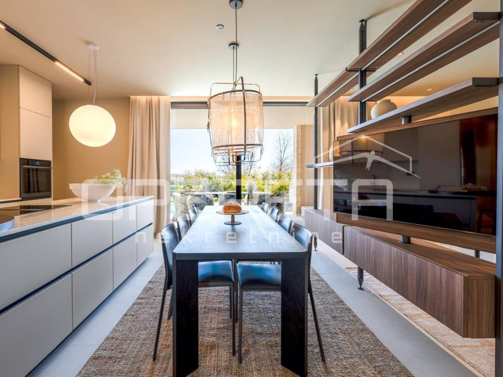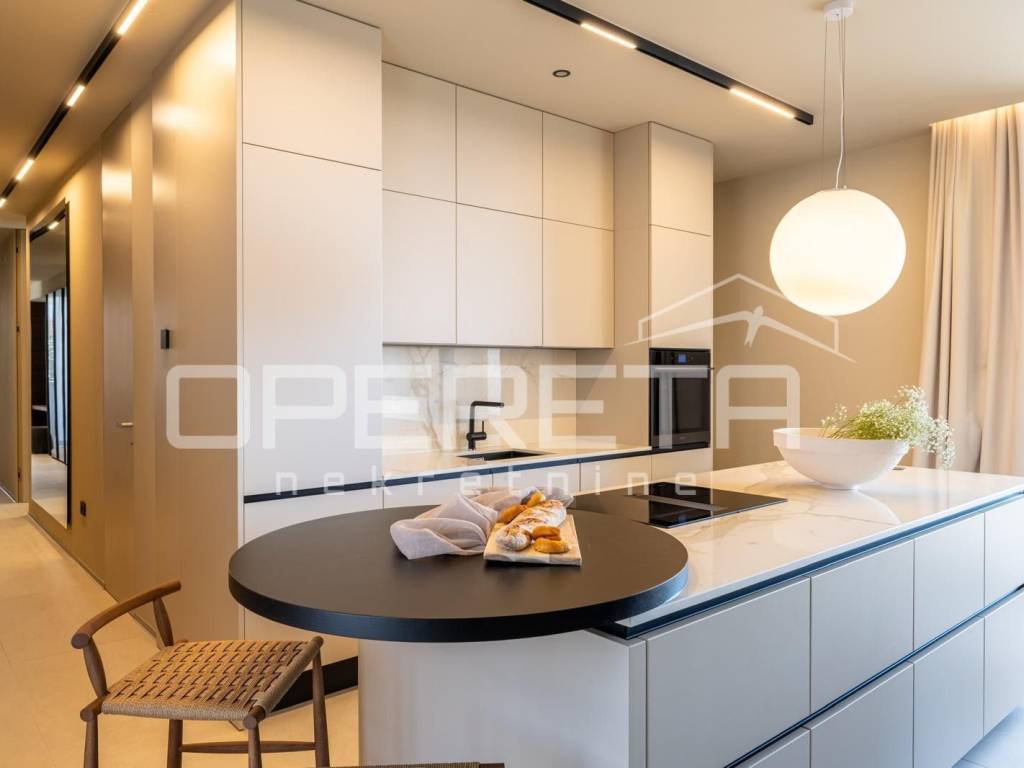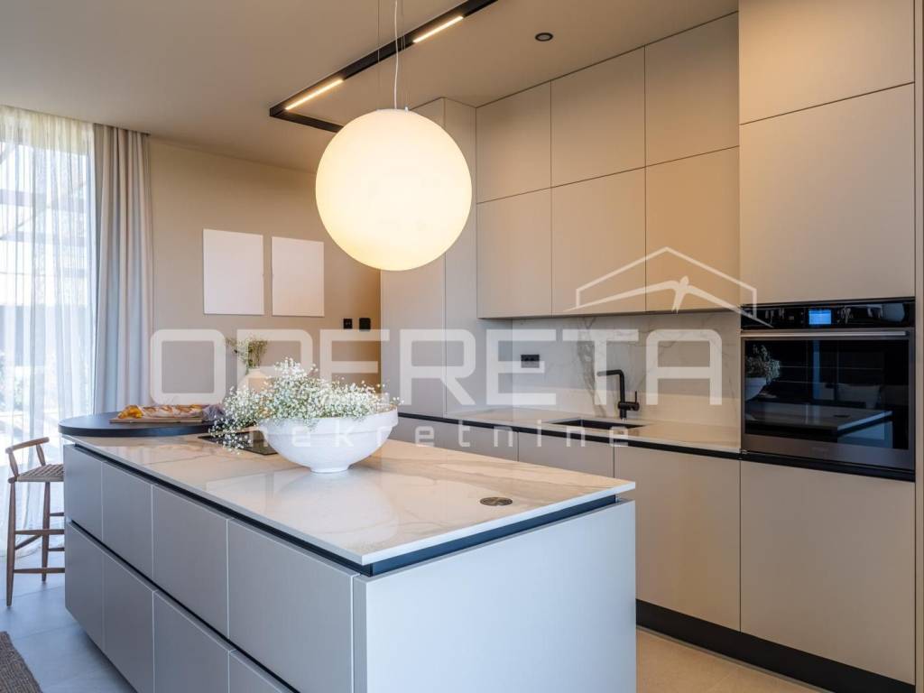 Heating and cooling are provided by a heat pump, underfloor heating, and air conditioning. The entire property is equipped with a Smart Home system, video surveillance, an alarm system, and security doors. Energy certificate A guarantees high energy efficiency.