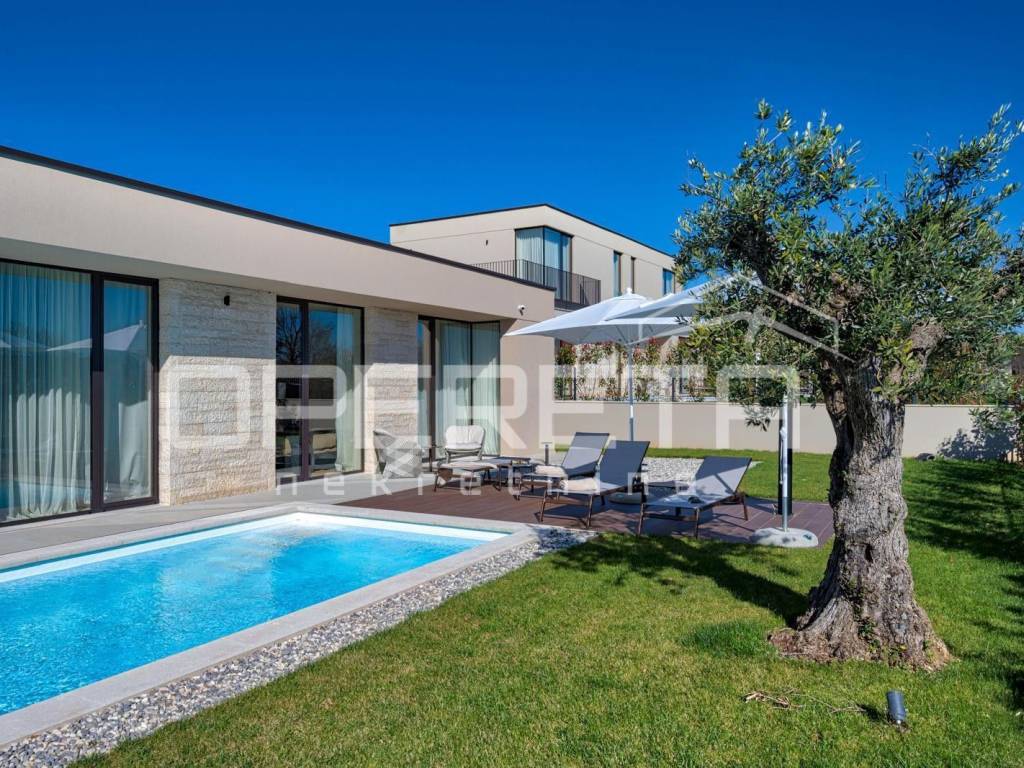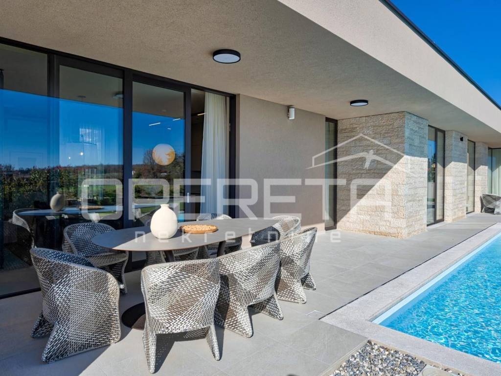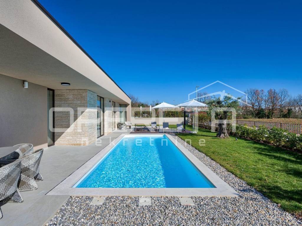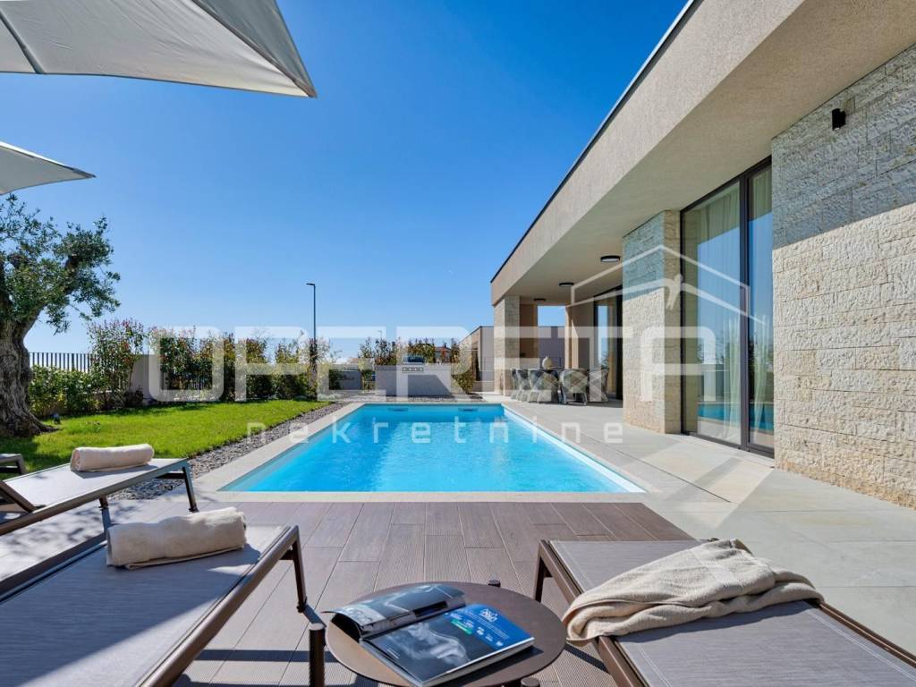 Istria, Kaštelir Modern Single-Storey Villa with Landscaped Garden and Sea View
