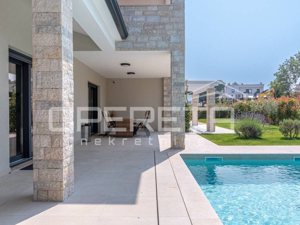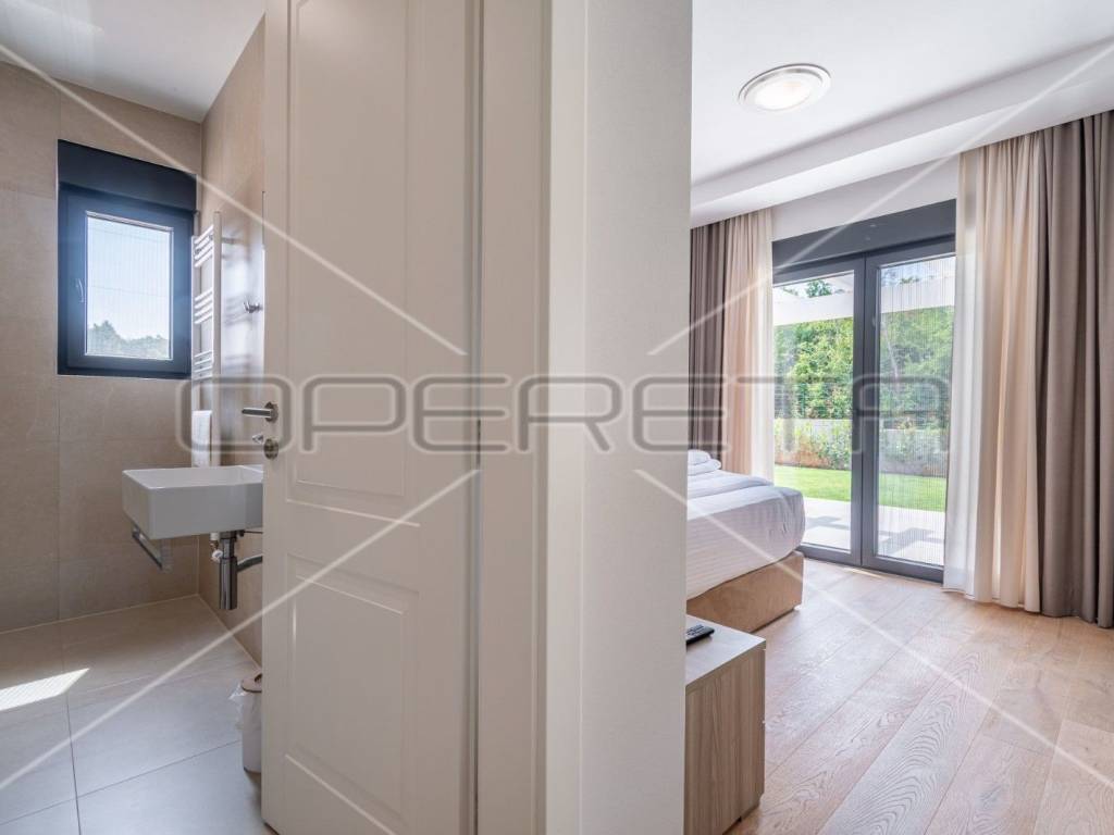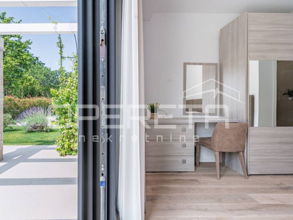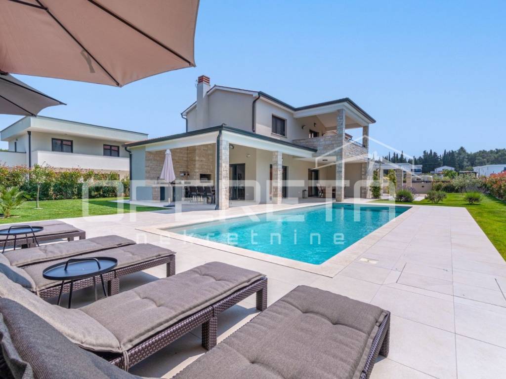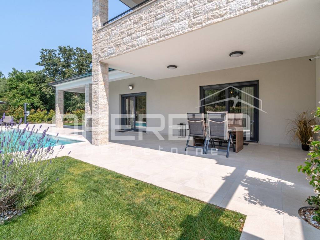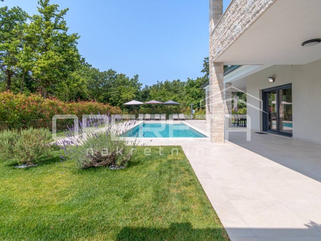 Just 1 km from the center of Poreč, a beautiful luxury villa surrounded by greenery is for sale. The villa was built with high-quality materials in cooperation with well-known architects and designers.