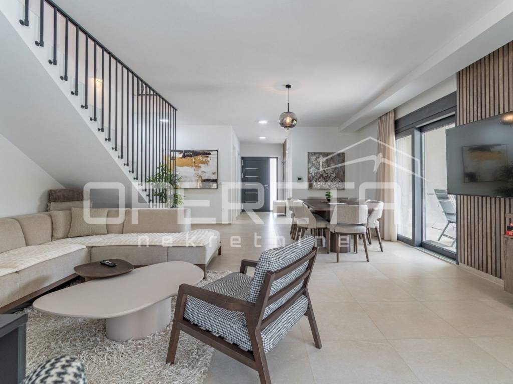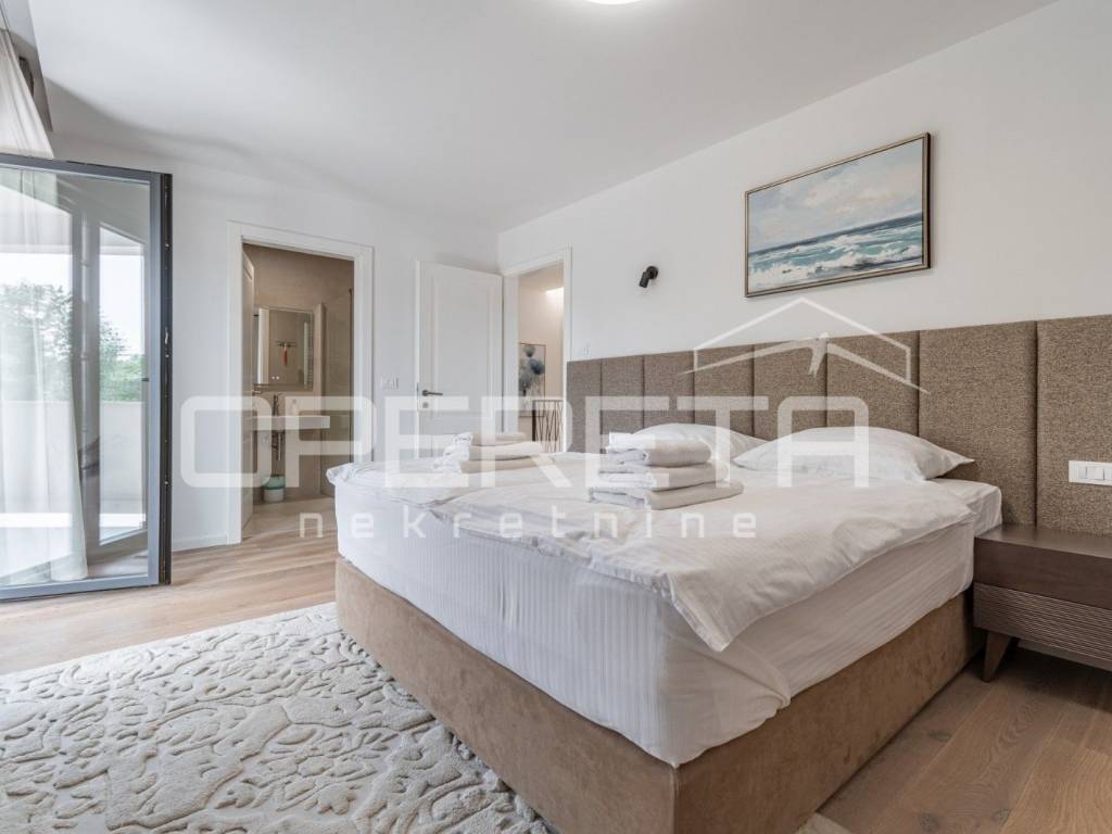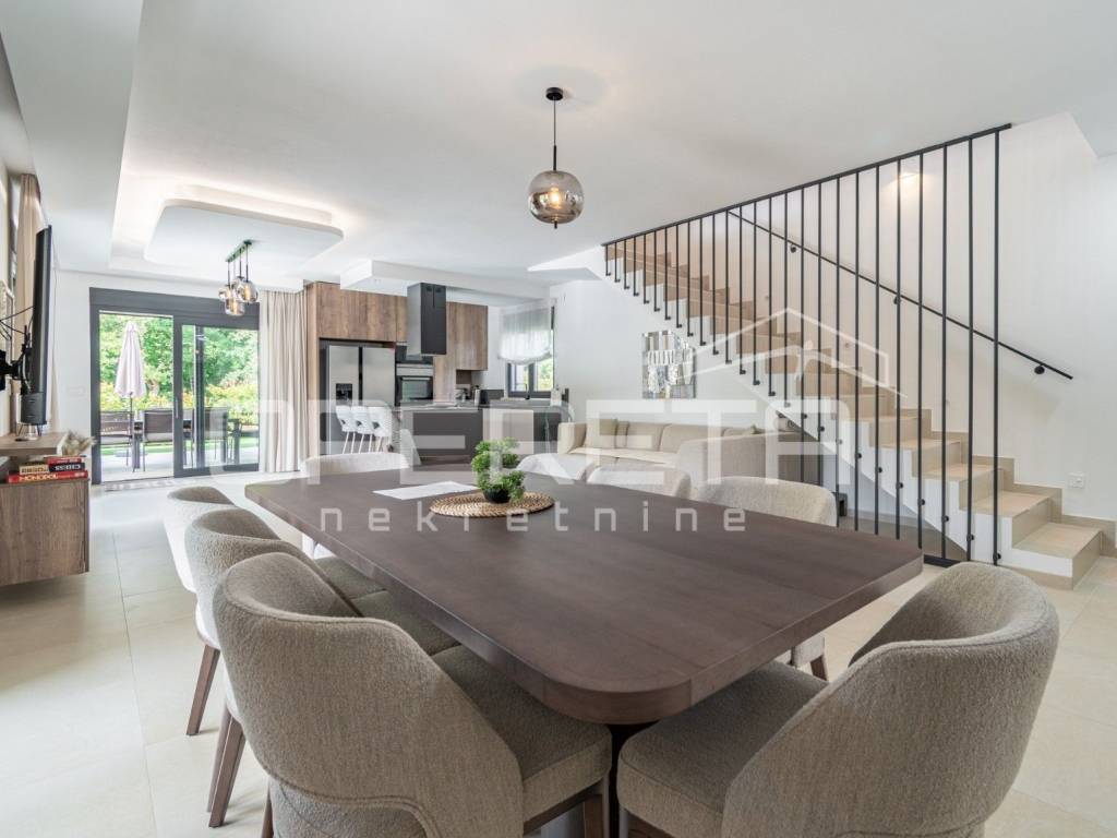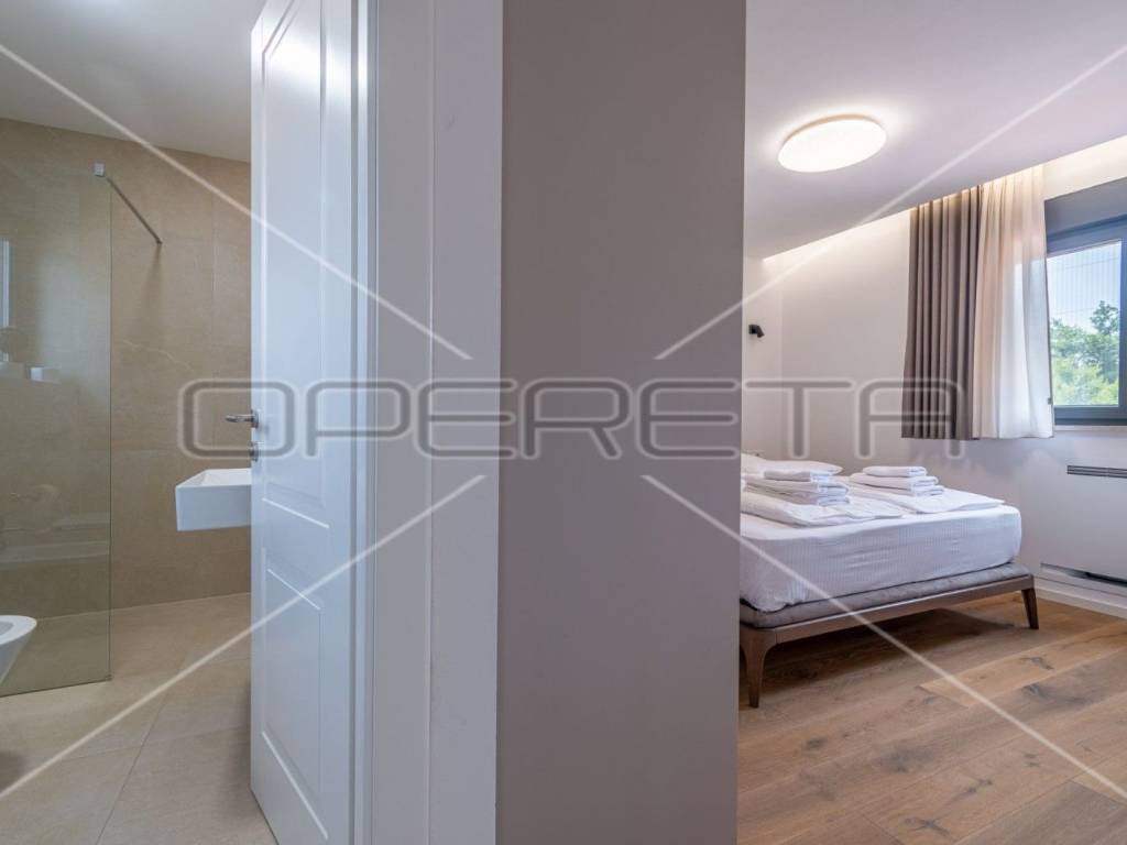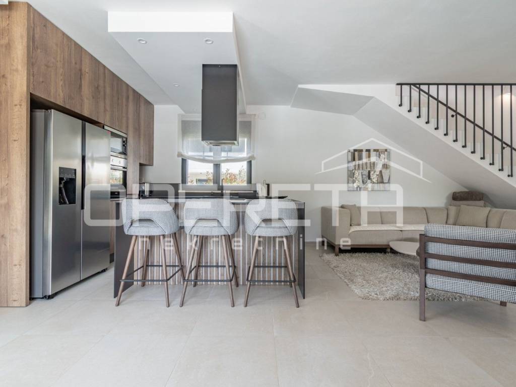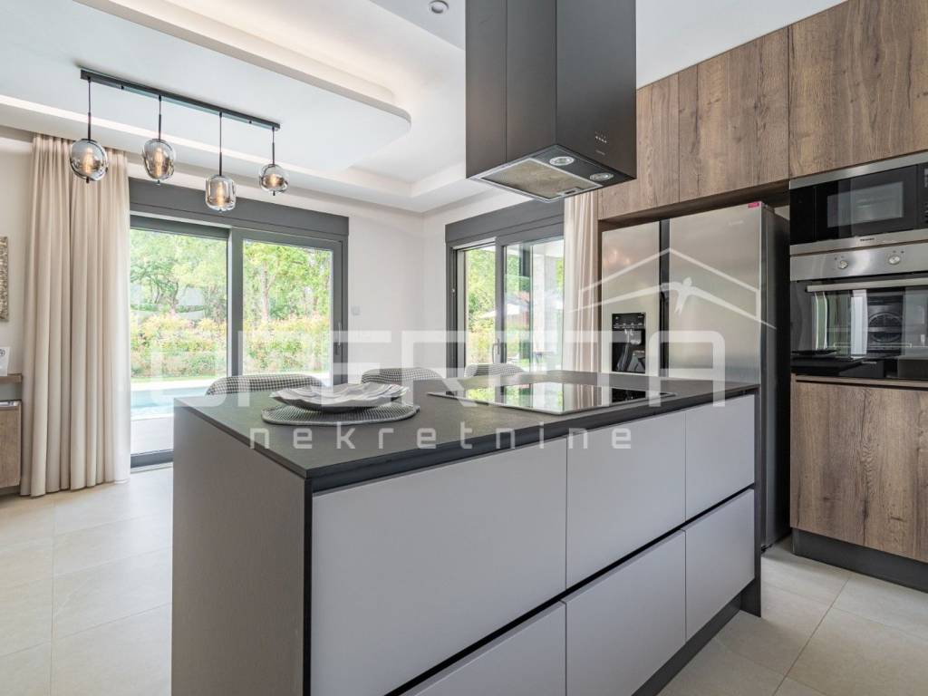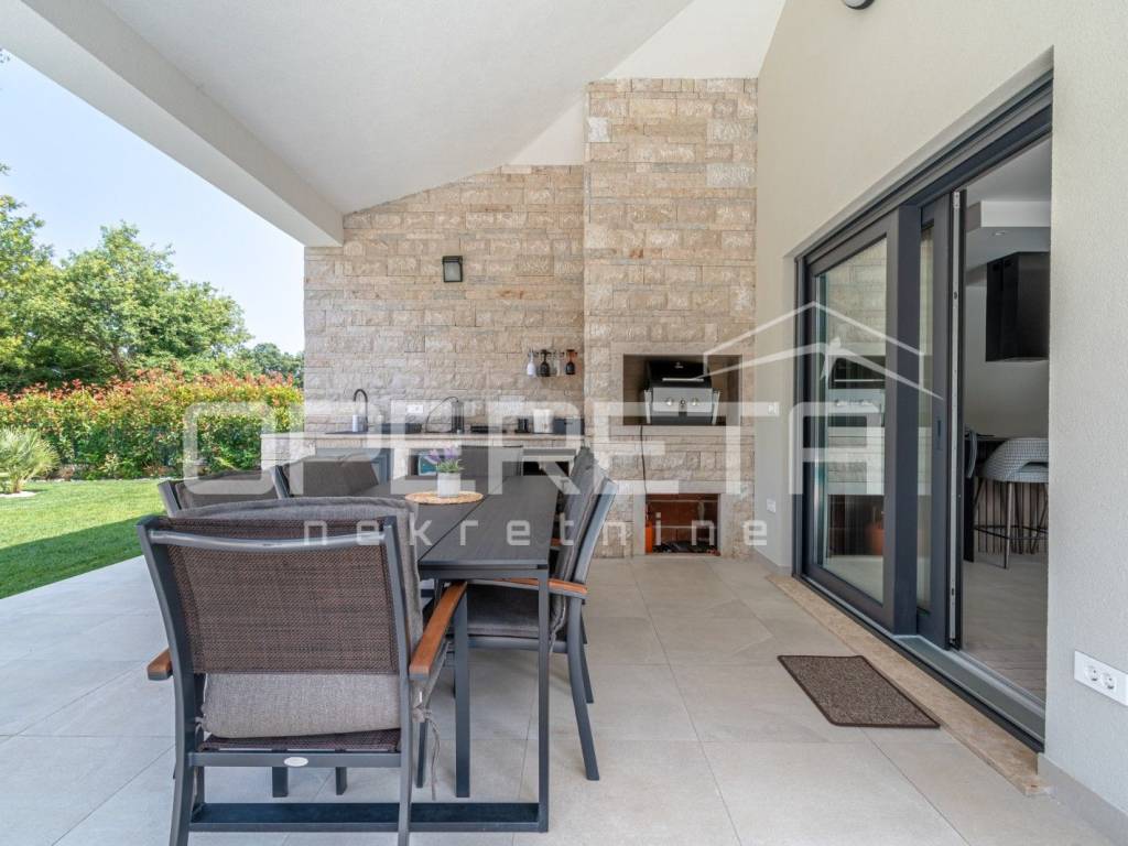 Just 1 km from the center of Poreč, a beautiful luxury villa surrounded by greenery is for sale. The villa was built with high-quality materials in cooperation with well-known architects and designers.