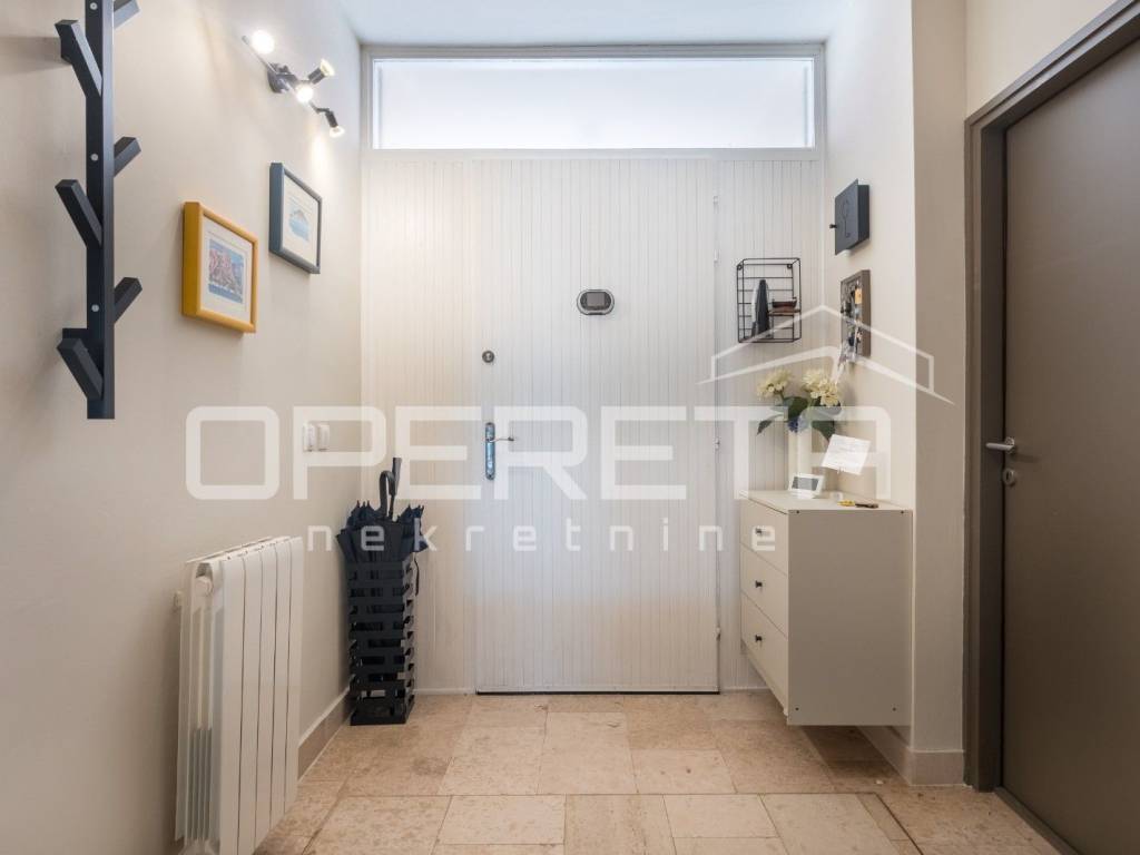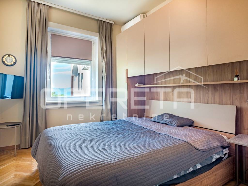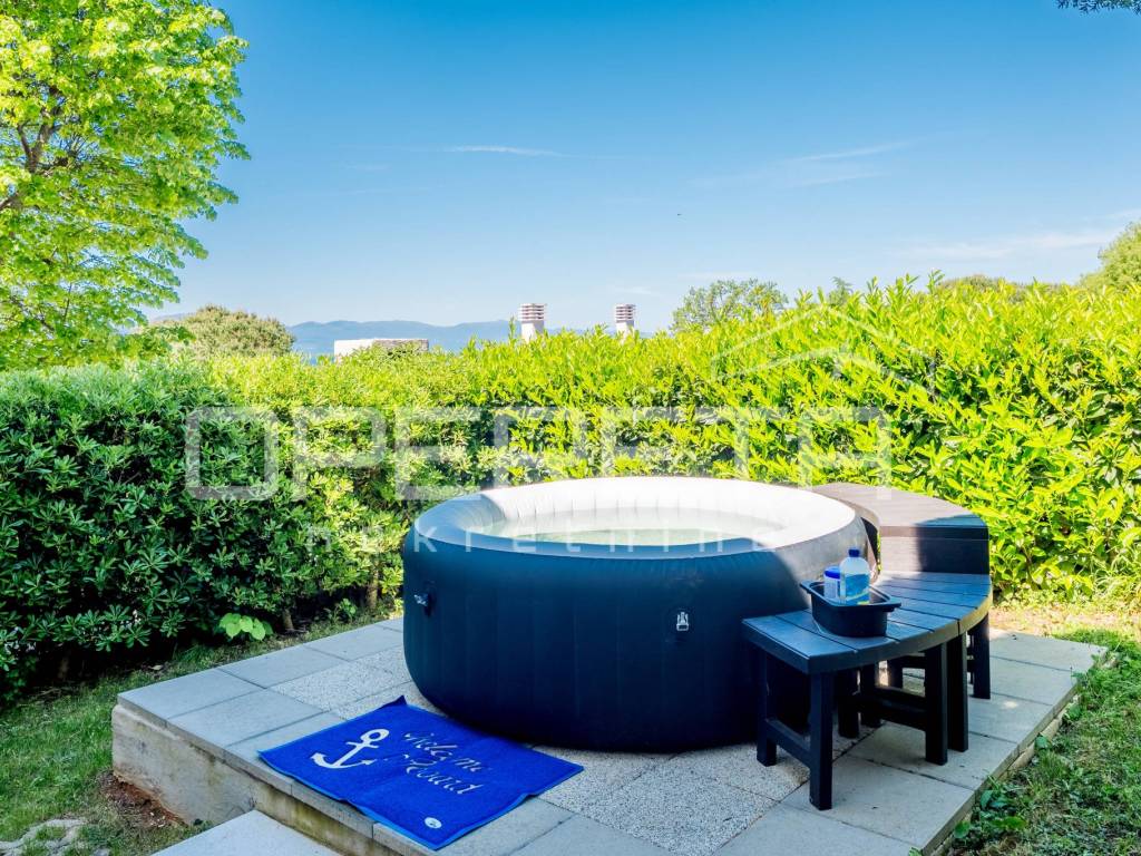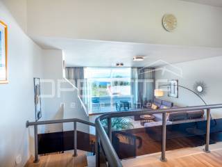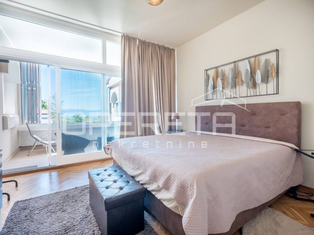 Designed by a renowned architect, the house blends harmoniously with its Mediterranean surroundings. An open view of the Kvarner Bay extends from almost every room. The functional layout includes a spacious living room with a fireplace and dining area, a fully equipped kitchen, an additional auxiliary kitchen, three bedrooms, two bathrooms, a separate guest toilet, a storage room and a large garage.