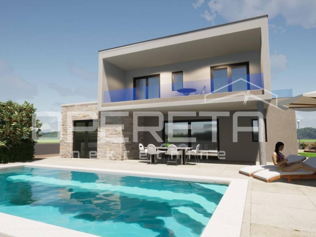We highlight a modern house with a pool and a plot of land covering 1,131 m in Gornje Raštane, Sveti Filip i Jakov.