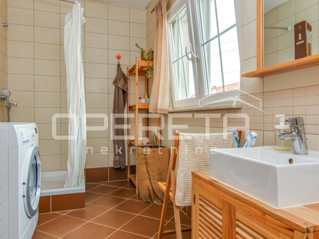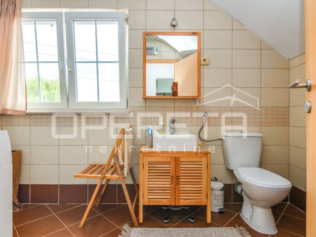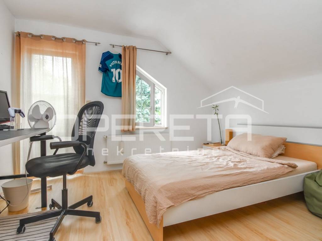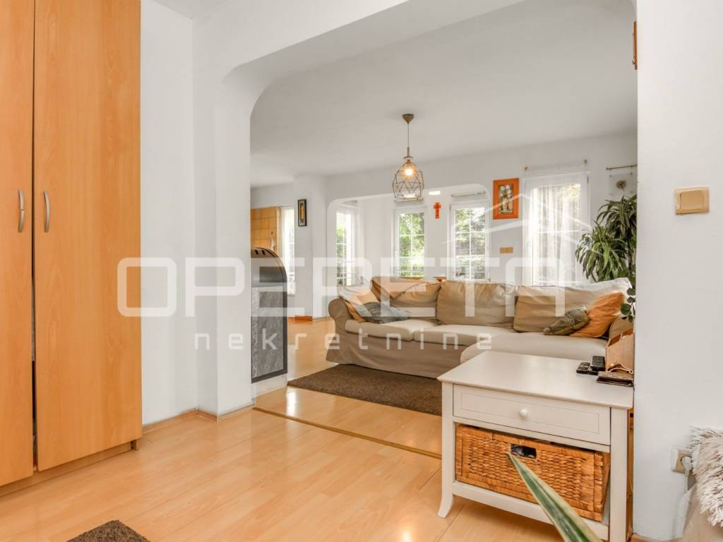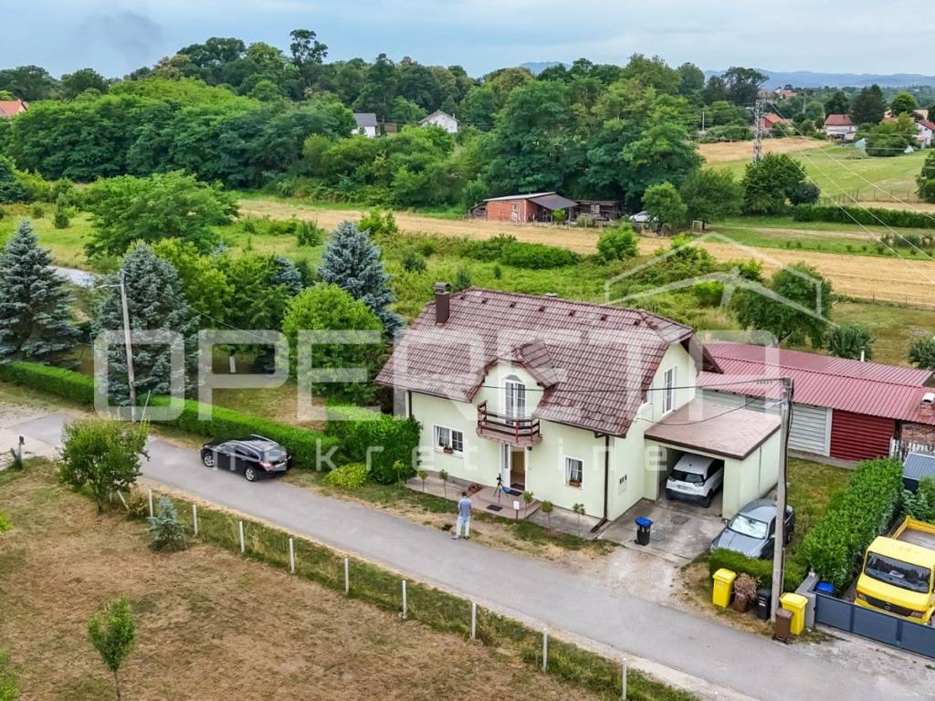 Samostojeća katnica na parceli od 719 m2. Sastoji se od podruma, prizemlja, kata i tavana. U prizemlju je vrlo prostran dnevni boravak, kuhinja s blagovaonicom, kupaonica s wc-om, izlaz na terasu i jedna spavaća soba. Na katu su 3 sobe iz kojih se izlazi na balkone, kupaonica s wc-om. Sve je legalizirano, urednih dokumenata i čistog vlasništva. Vrlo održavana kuća, odmah useljiva s prekrasnom okućnicom uokrug kuće i voćkama koje su rodne i krase vrt. Mirna ulica na domak škole, dućana, vrtića, a autobus staje na par metara od kuće. Preporuka!