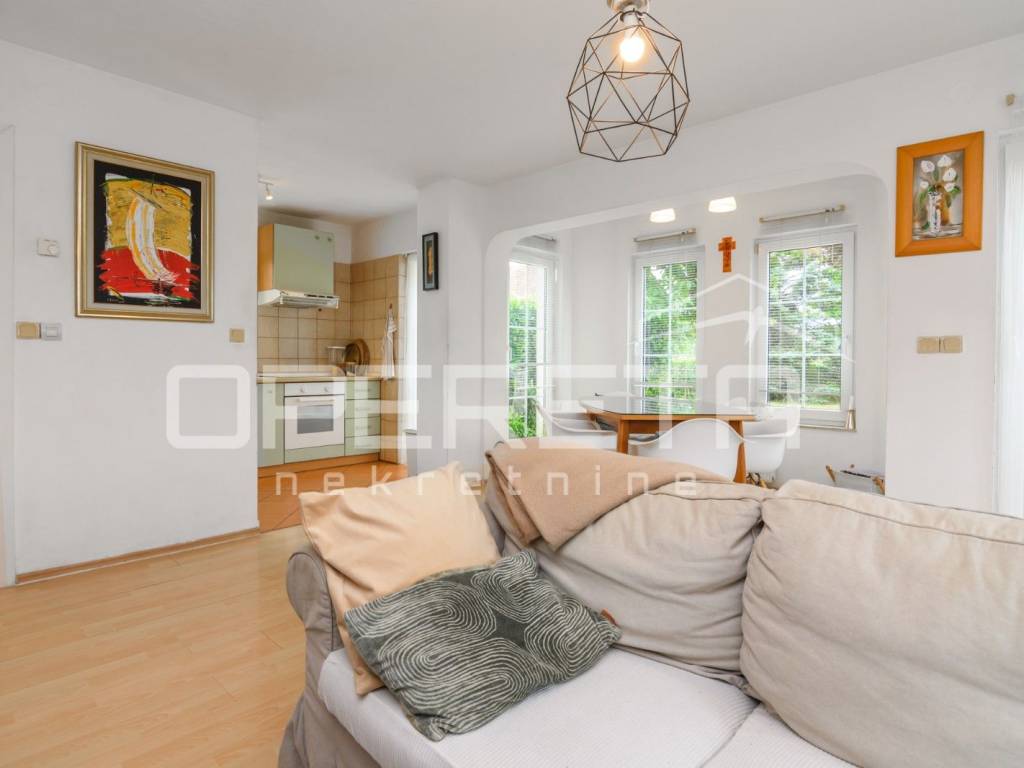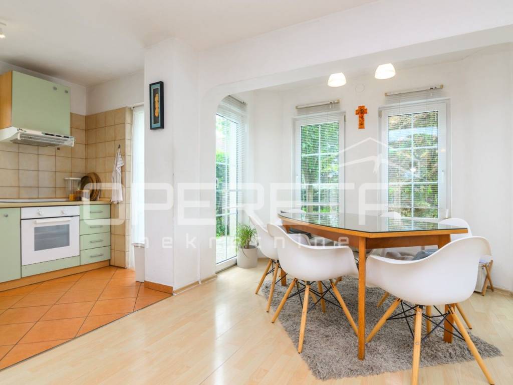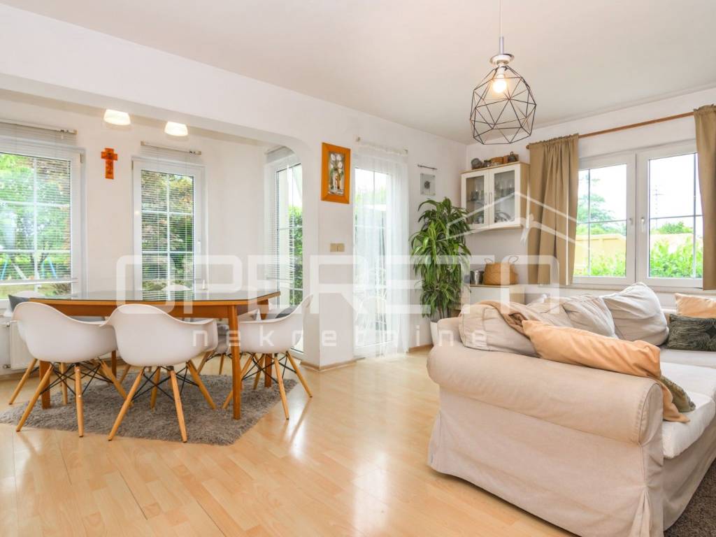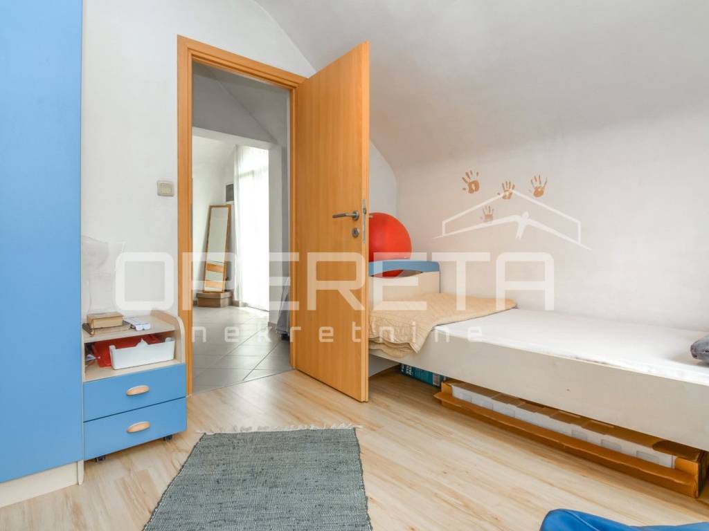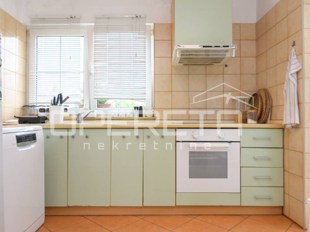 Samostojeća katnica na parceli od 719 m2. Sastoji se od podruma, prizemlja, kata i tavana. U prizemlju je vrlo prostran dnevni boravak, kuhinja s blagovaonicom, kupaonica s wc-om, izlaz na terasu i jedna spavaća soba. Na katu su 3 sobe iz kojih se izlazi na balkone, kupaonica s wc-om. Sve je legalizirano, urednih dokumenata i čistog vlasništva. Vrlo održavana kuća, odmah useljiva s prekrasnom okućnicom uokrug kuće i voćkama koje su rodne i krase vrt. Mirna ulica na domak škole, dućana, vrtića, a autobus staje na par metara od kuće. Preporuka!
