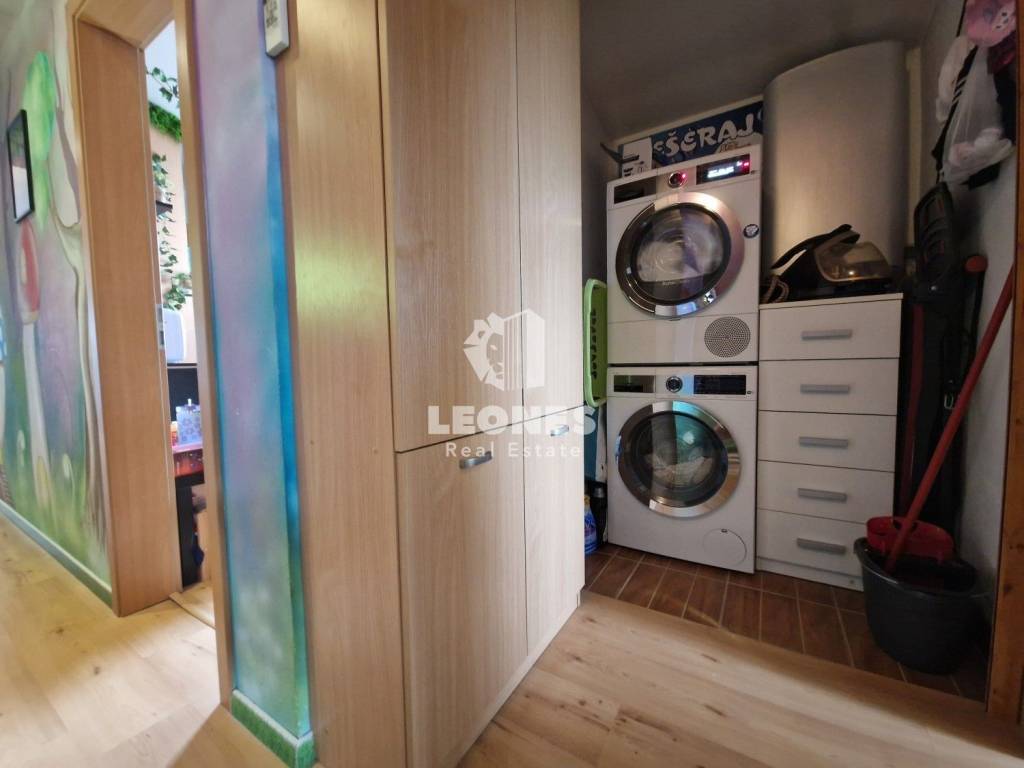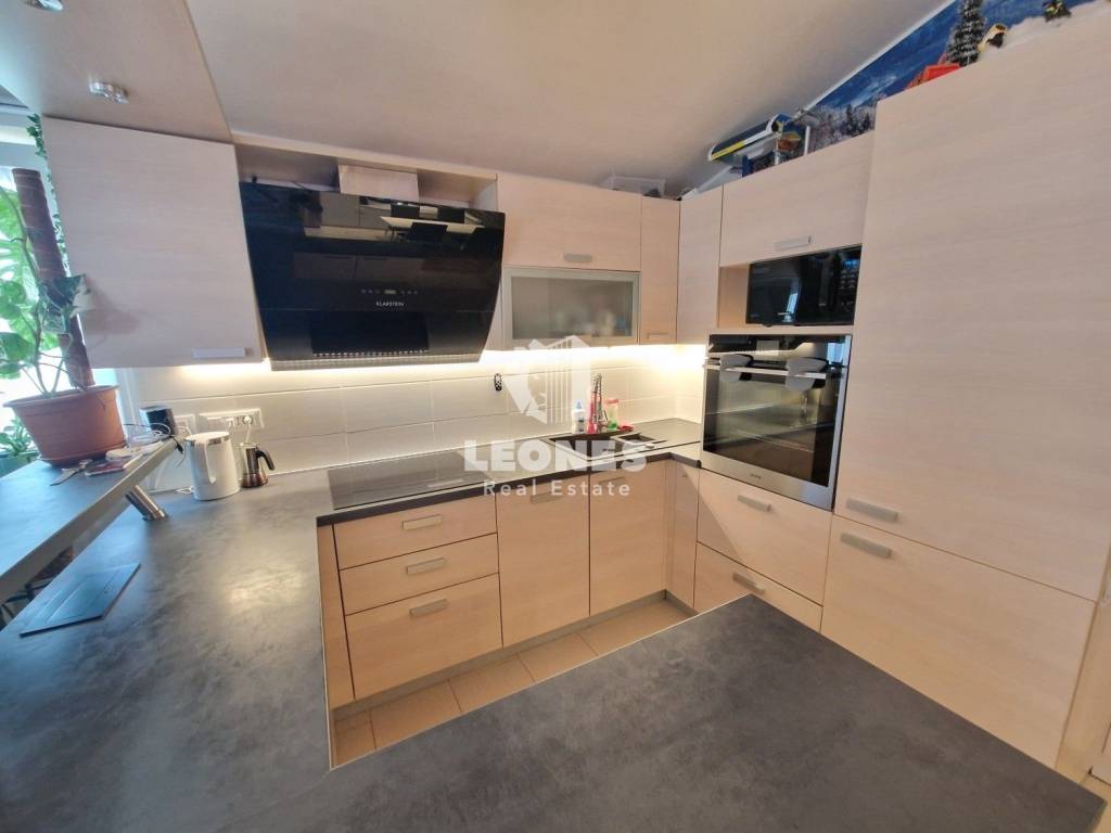 The heating is central with oil, while the cooling is with air conditioners. The facade has been renovated (styrofoam) so that heating and cooling costs are minimal. The apartment is sold fully furnished with new furniture and appliances.