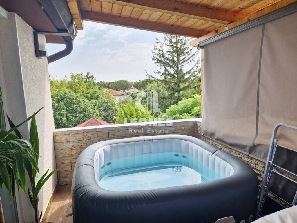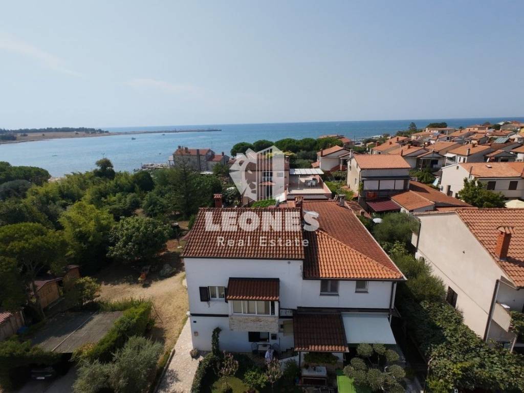 Apartment for sale in a great location, just 100 m from the sea and the beach in Umag. The net usable area of the apartment is 92 m2 and consists of an external staircase, a closed entrance hall, a living room, a kitchen, a terrace with a jacuzzi, a storage room, 3 bedrooms, one of which has been transformed into a playroom, and a bathroom. Von der Terrasse hat man einen teilweisen Blick auf das Meer.