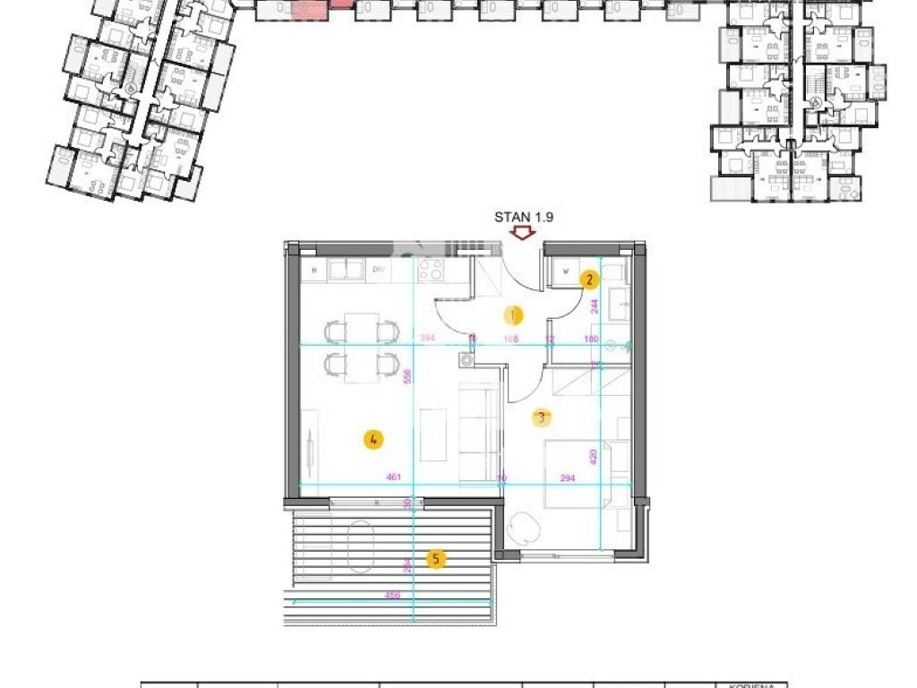 An apartment for sale in a quality building in Umag. The net usable area of the apartment is 50.47 m2. The apartment is located on the first floor and consists of a living room and kitchen, bedroom and terrace. It has a storage room of 3.02 m2 and one outdoor parking space.