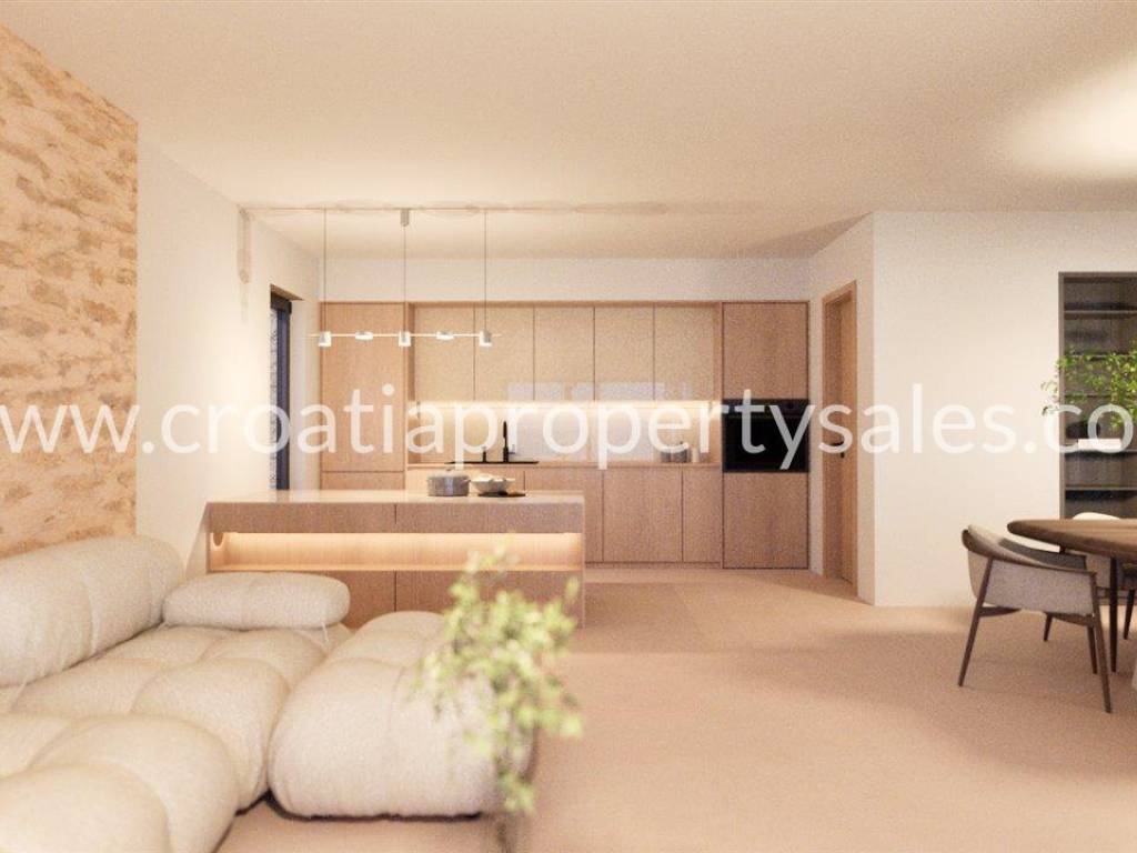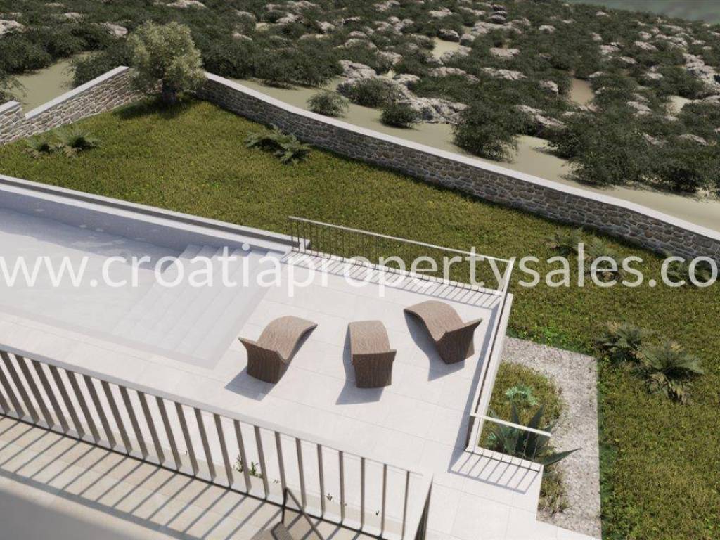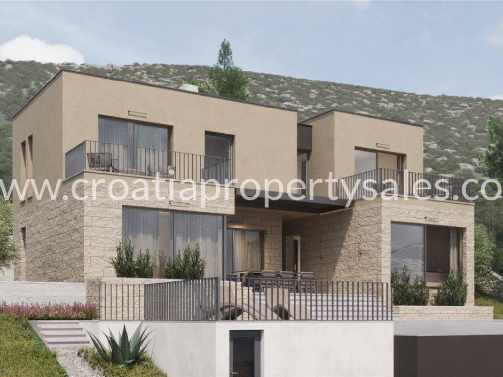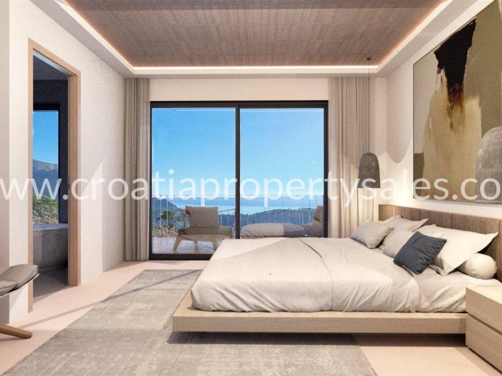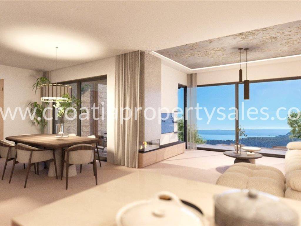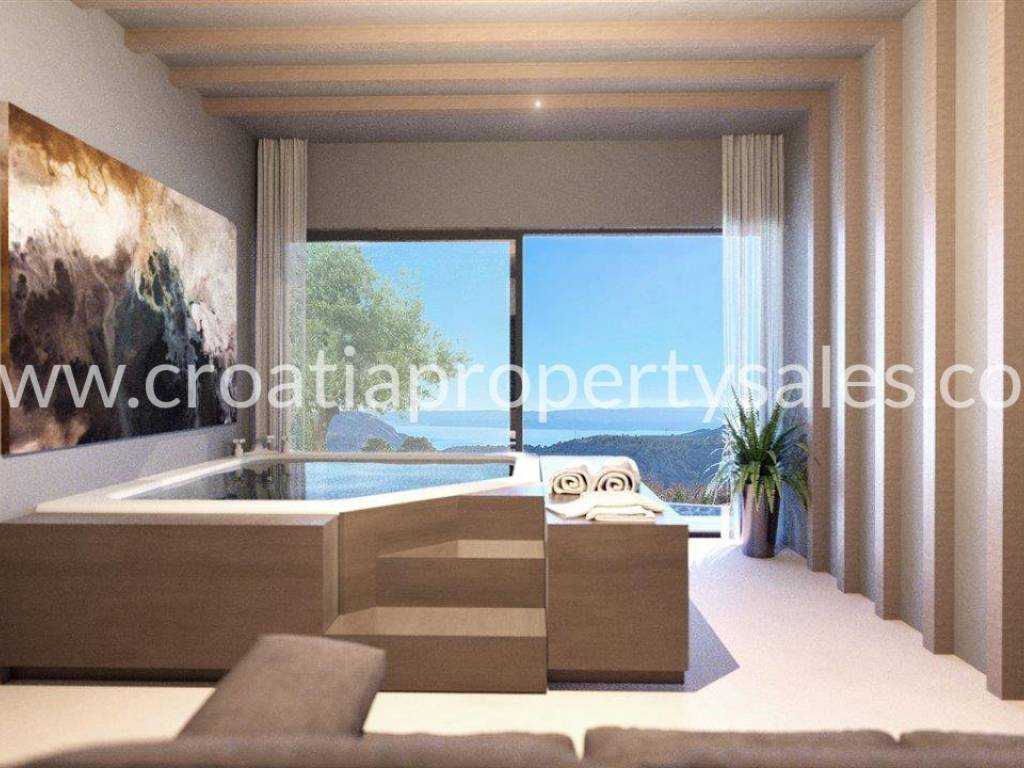The stairs lead to the first floor, where there are two master bedrooms that boast large walk-in closets and luxurious bathrooms with direct exits to the terraces with a beautiful view of the sea, the Cetina canyon and the Omiš Dinara. The surroundings of the house will be lined with Brac stone, which adds to the charm and connects it with the rocky environment for which the Omiš hinterland is known.