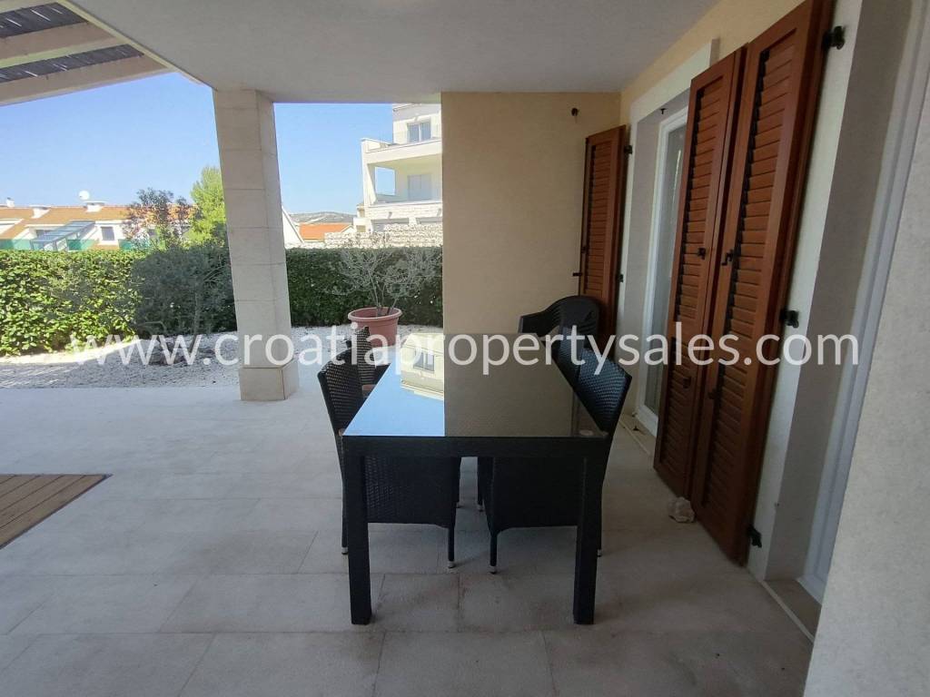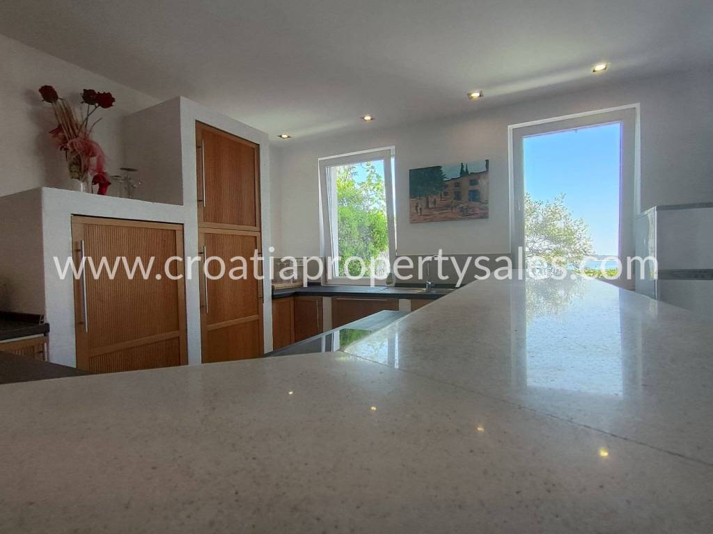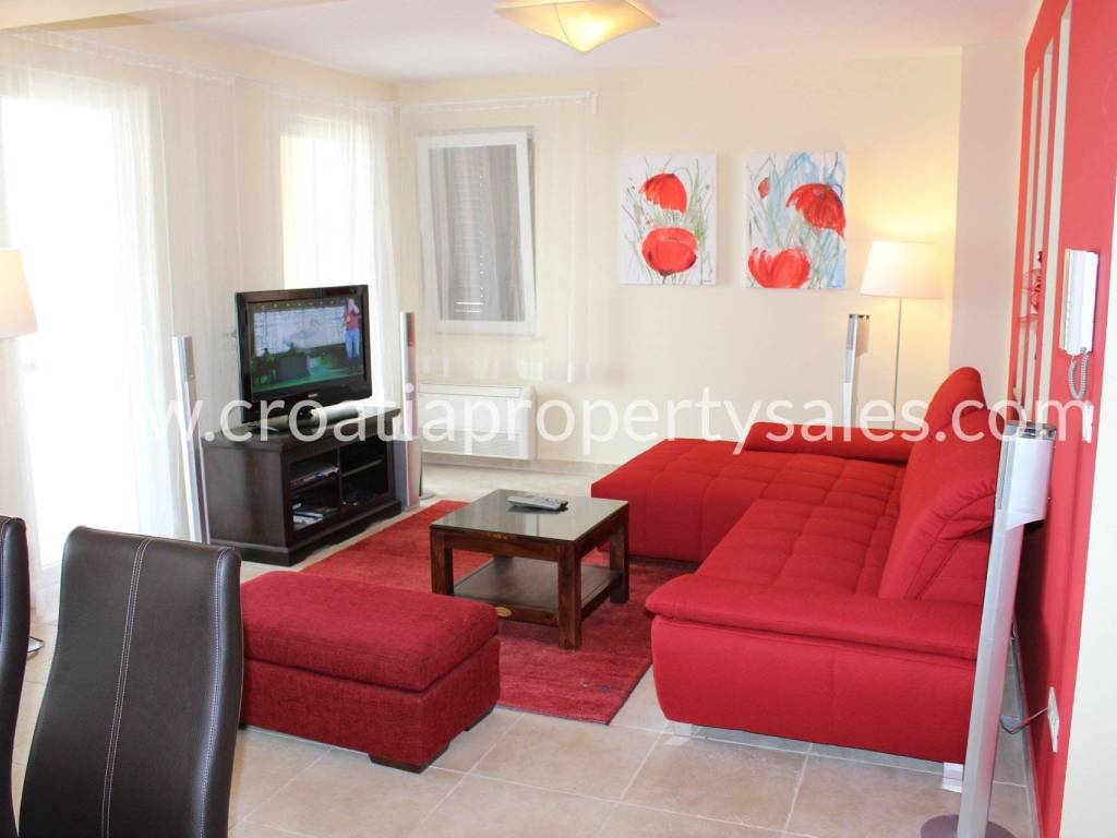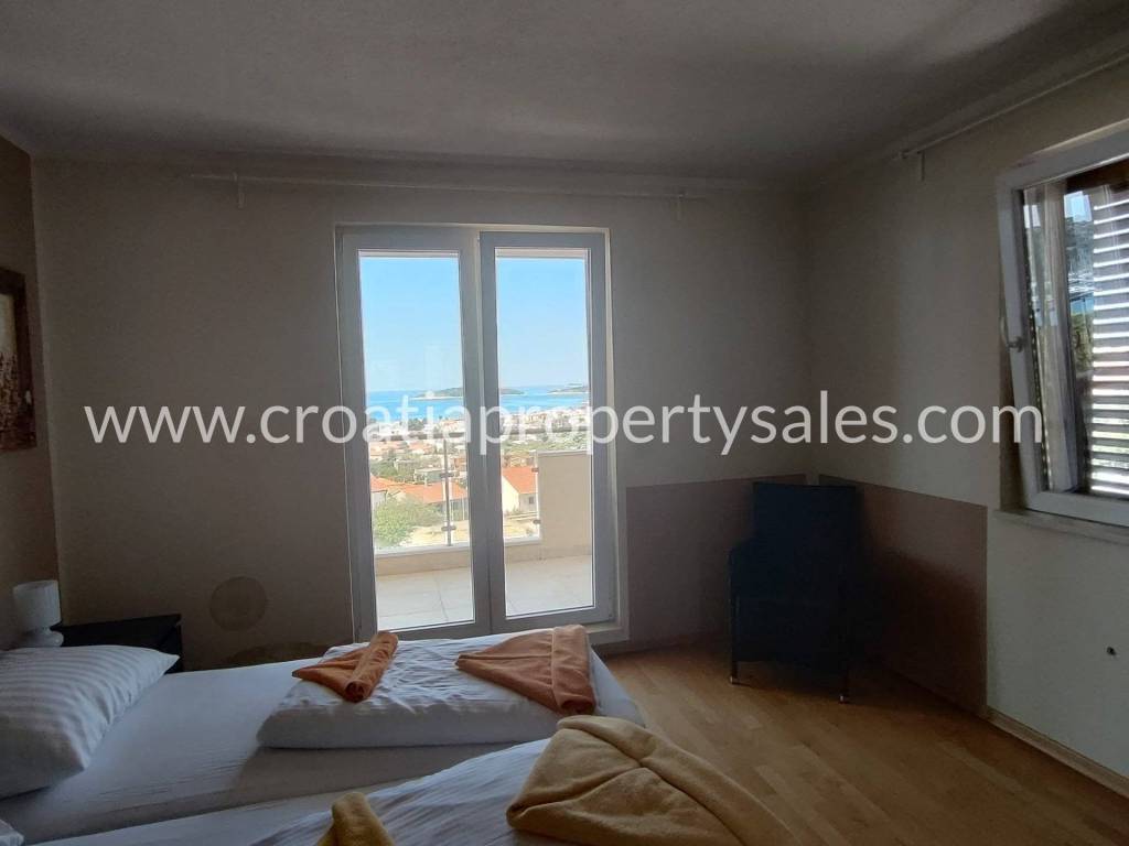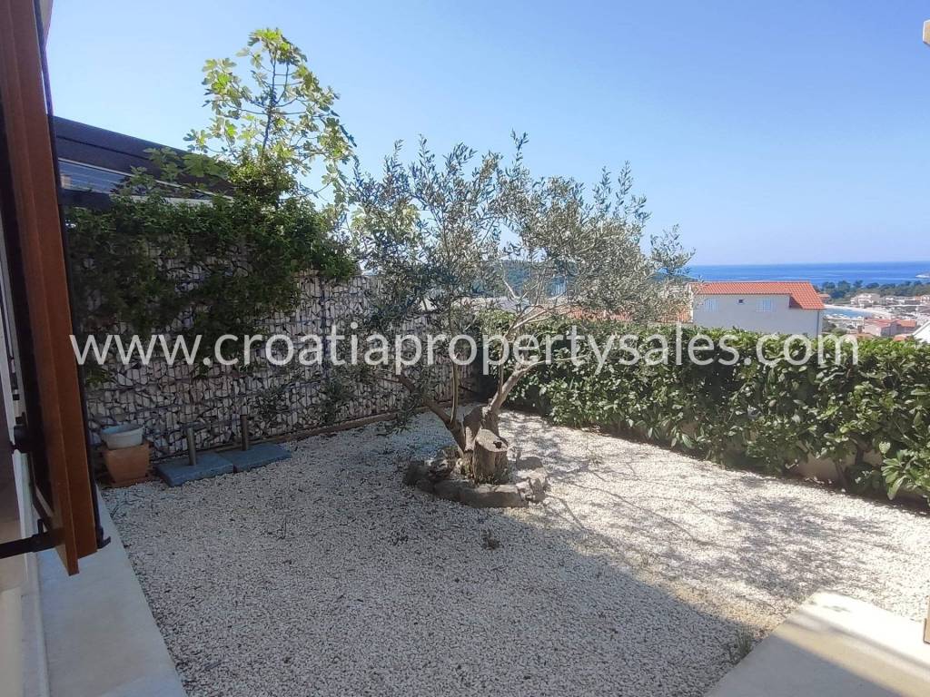 Two bedrooms also have access to a spacious terrace with a sea view and Marina Frapa.