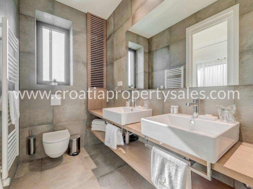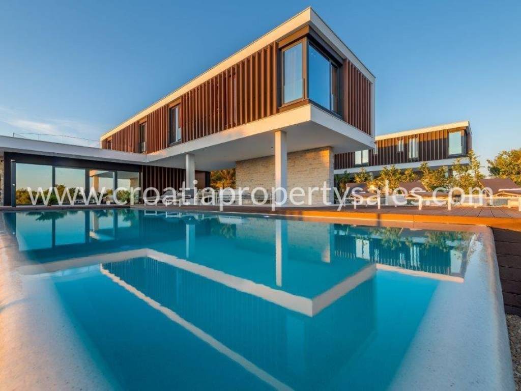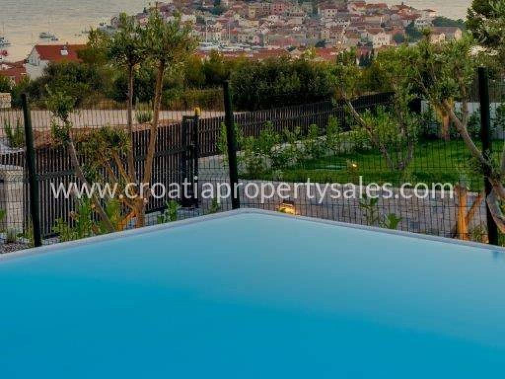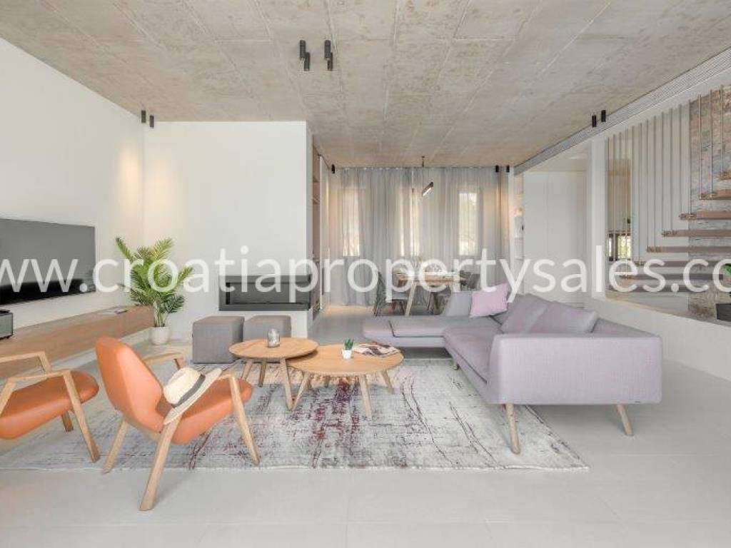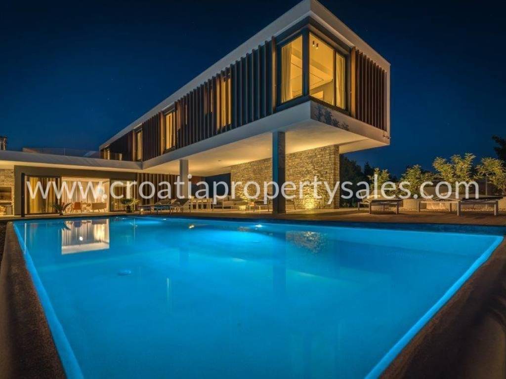 Superb, detached luxury villa with a beautiful sea view. The villa is located on a plot of 962 m2 and has a living area of 300 m2. It consists of a living room, dining room and four bedrooms with ensuite bathrooms. Due to its micro-location, the villa offers peace and enjoyment of true Mediterranean environment, and yet it is close to the center. It offers fantastic view of the sea and city of Primosten.