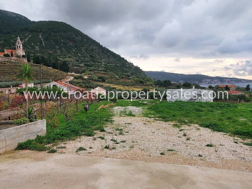 Sa zemljišta se pruža pogled na more, otok Biševo, i crkvu Sv. Nikole.
