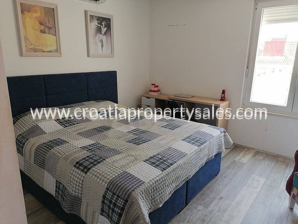 There is also a long hallway that has large wall closets and leads to the bedrooms that are east and south oriented. Next to the rooms there is a beautiful and modern renovated bathroom.