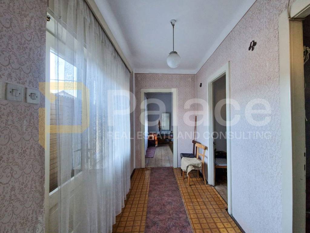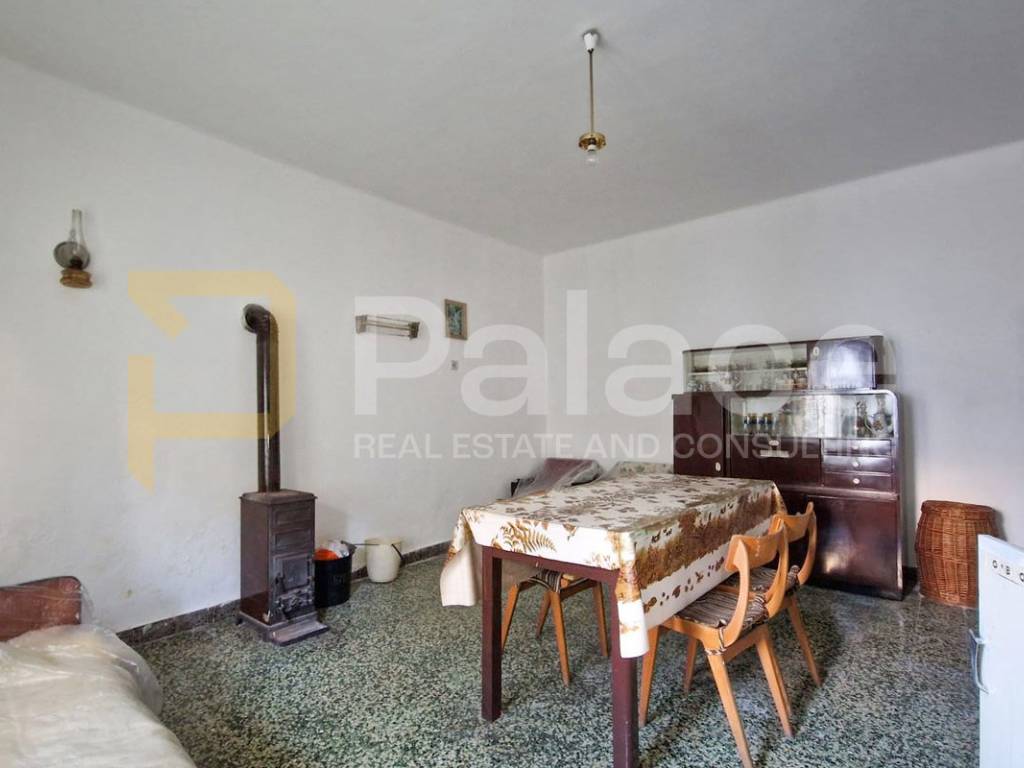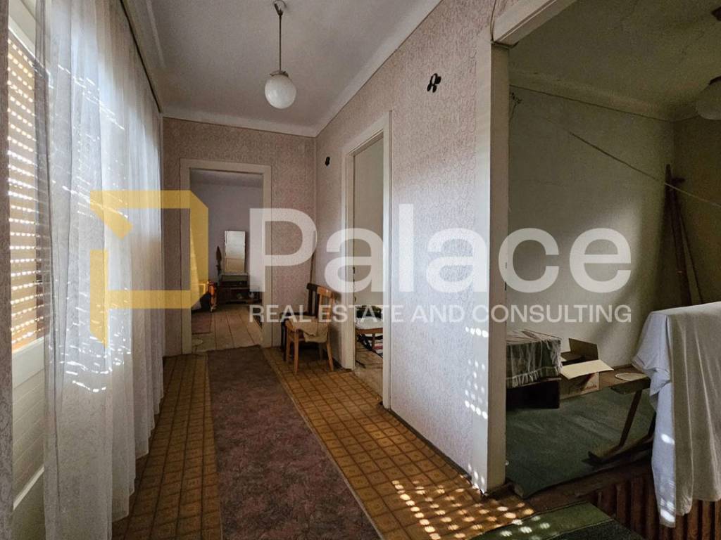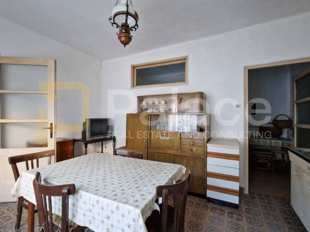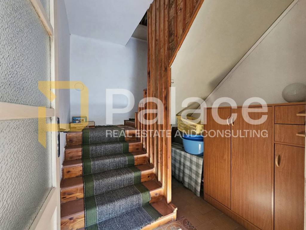 It consists of an entrance hall, living room, dining room with kitchen, and a practical pantry, while an internal staircase connects the ground floor and upper floor. On the first floor, there are two spacious bedrooms and one smaller room, with access to a balcony from the hallway. The space requires renovation, providing the future owner with the opportunity to fully adapt it and turn it into a comfortable family home or a quality investment.