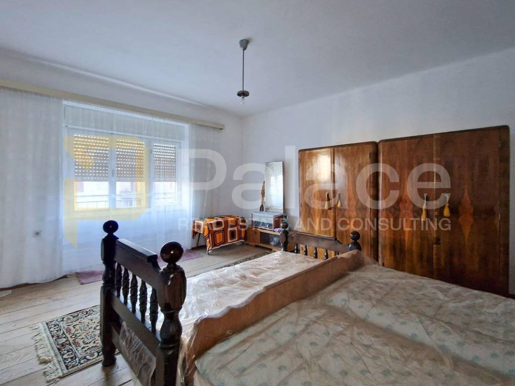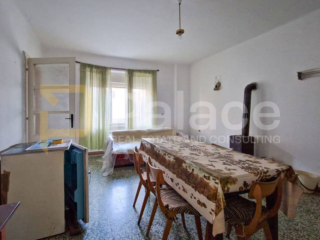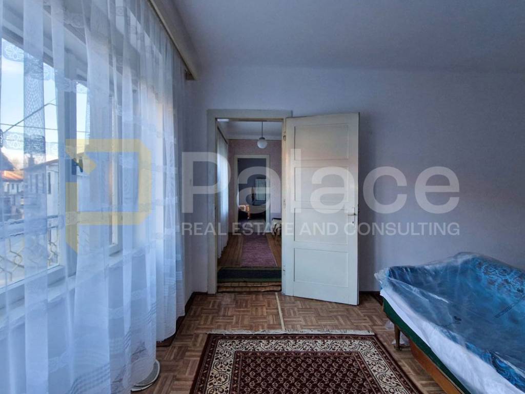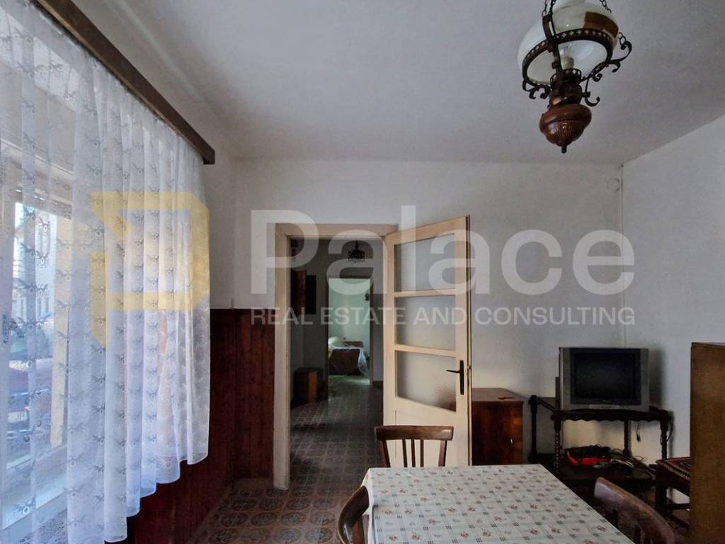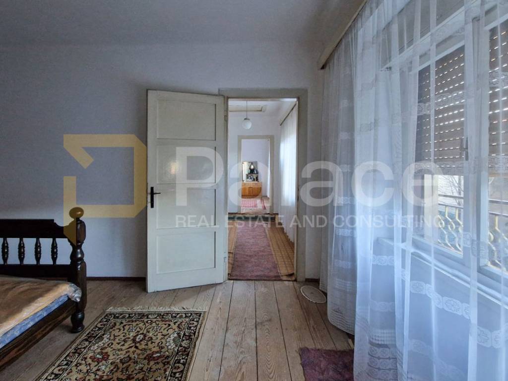 It consists of an entrance hall, living room, dining room with kitchen, and a practical pantry, while an internal staircase connects the ground floor and upper floor. On the first floor, there are two spacious bedrooms and one smaller room, with access to a balcony from the hallway. The space requires renovation, providing the future owner with the opportunity to fully adapt it and turn it into a comfortable family home or a quality investment.
