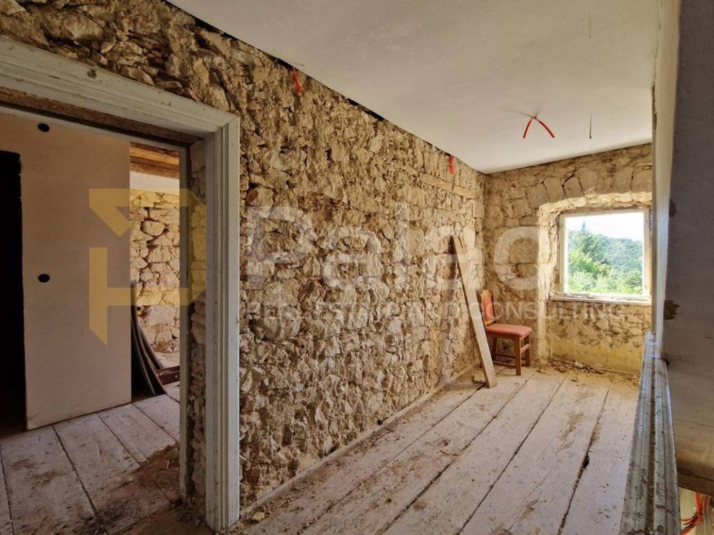 For sale is a stone house from 1853 located in the heart of Križišće, with a garden of approximately 950 m. The house is currently undergoing renovation a new roof has been installed, new floorboards have been made, electricity has been connected, and interior renovation has begun. The facade has been removed, revealing the beautiful authentic stone that gives the house a special charm.