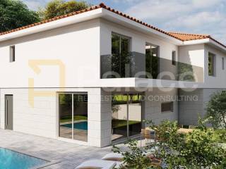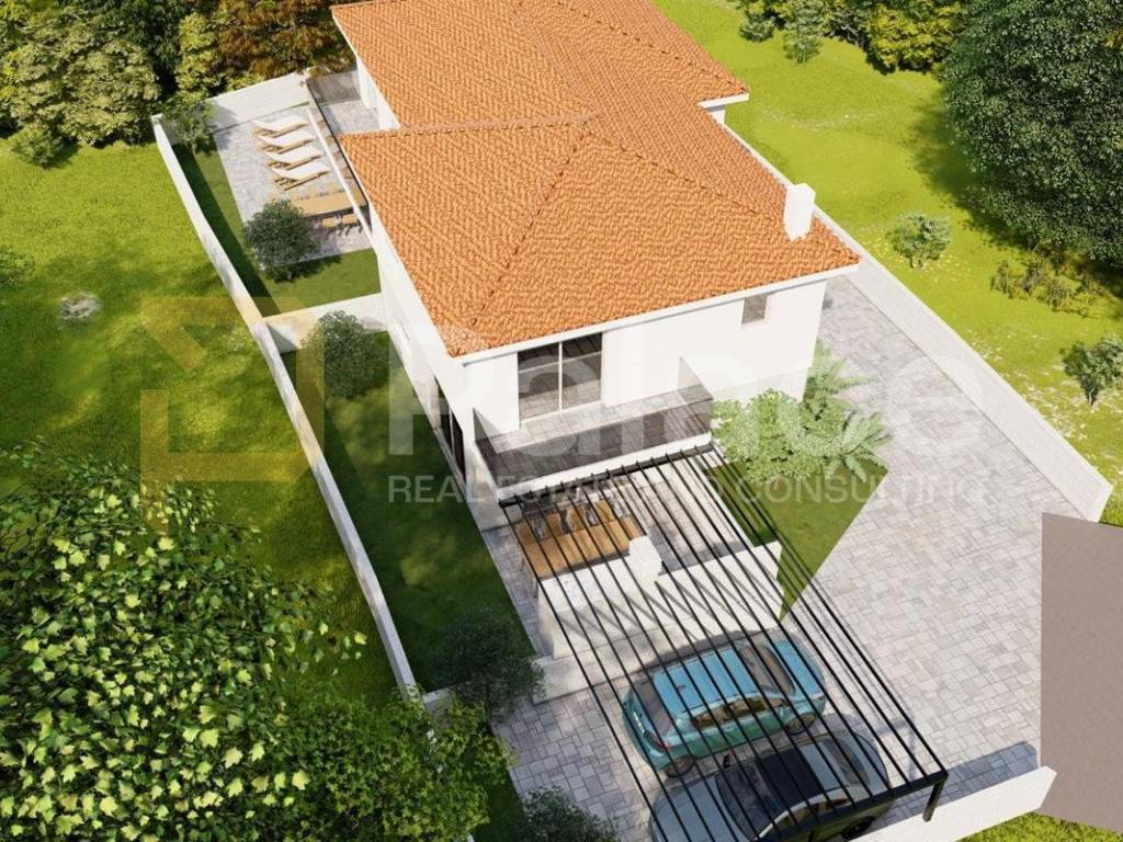 The total area of the villa is almost 300 m, spread over two two-storey residential units. Each unit has its own entrance, terraces, parking, and part of the garden area, with an emphasis on comfort, functionality, and design.
