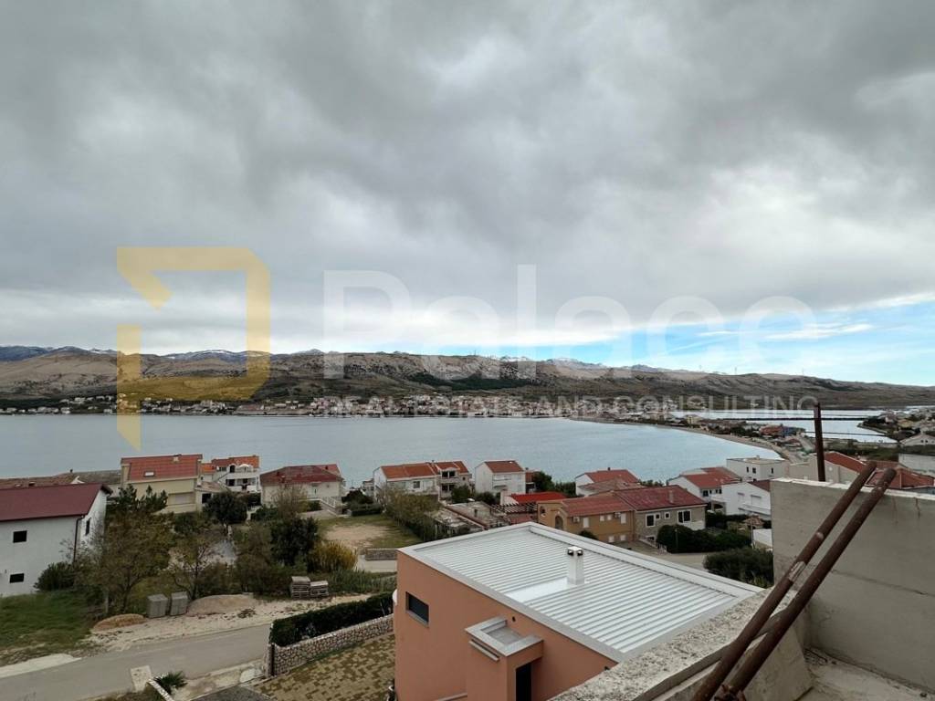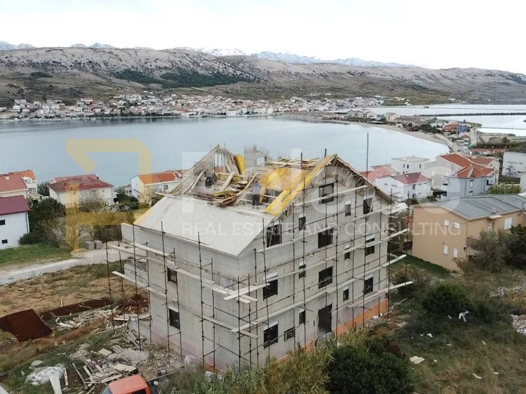 Apartments for sale in a new, smaller residential building located on the island of Pag. The building consists of a total of five apartments: two two-bedroom apartments on the ground floor, two two-bedroom apartments on the first floor, and a spacious four-bedroom penthouse on the second floor. This modern property is designed to provide maximum comfort and luxury, with an irresistible panoramic sea view from each apartment.