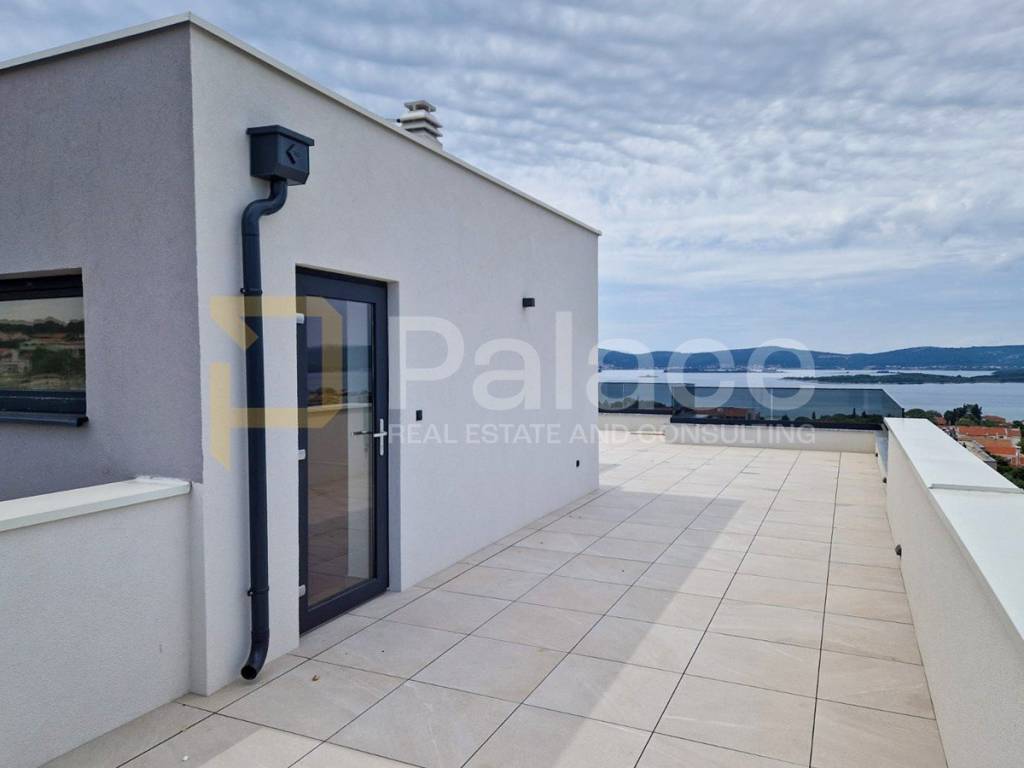 A penthouse on the second floor of a newly built building is for sale. With a surface area of 177.05 m, it includes three comfortable bedrooms, two modernly designed bathrooms, two hallways for optimal space organization, a practical storage room, and an open space living room with kitchen and dining area offering views of the sea and islands. Elegant covered terraces of 7.83 m and 10.35 m provide additional outdoor space for relaxation and enjoyment.