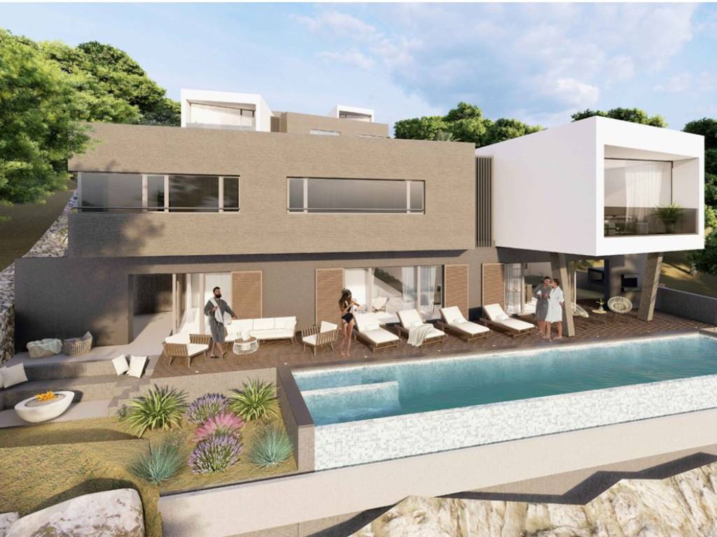 In the elevated part of Seget Donji, there is a plot of land on which a luxury villa complex will be built. The complex will consist of 5 villas built in a cascading design concept, allowing for an open view towards Trogir, Seget, Okrug, the sea, and the islands.