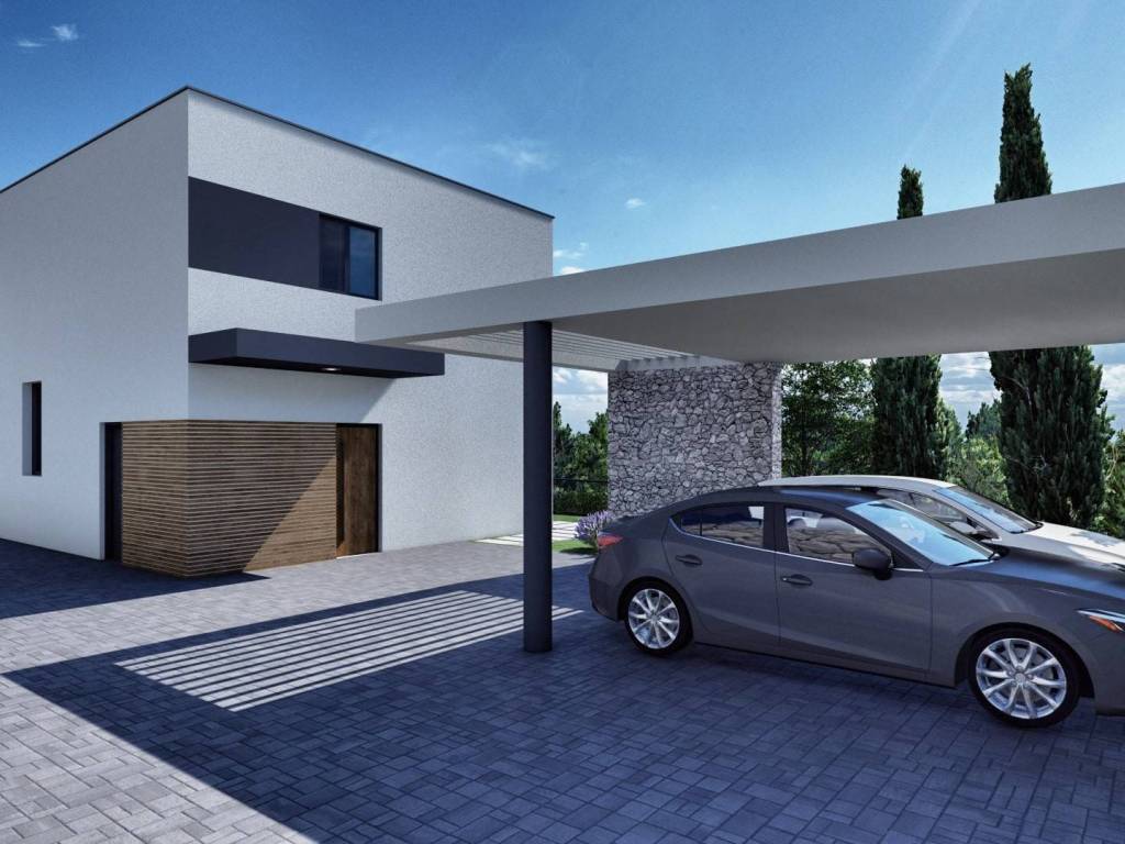 The living area of the house covers 162 m2, consisting of a ground floor and first floor, and includes covered outdoor parking spaces.