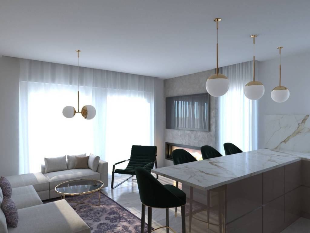 The apartment with a total area of 55.20 m² consists a kitchen with a dining room and a spacious living room, two bedrooms, two bathrooms, a hallway and terraces with a total area of 19.20 m².