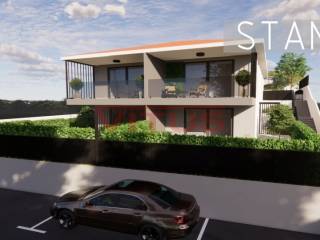 Island of Krk, Omišalj! Two-bedroom apartment of 68 m2 is located on the first floor floor of a modern new building with four apartments. It consists of a kitchen with dining room and living room, two bedrooms, bathroom and a covered terrace. High quality construction and equipment, which includes: PVC joinery with electric shutters, electric underfloor heating, security doors, air conditioning, and top quality floor coverings and sanitary ware. The apartment has a garden of 56 m2 and one parking space. It is located in a great location, just 150 m from the sea!