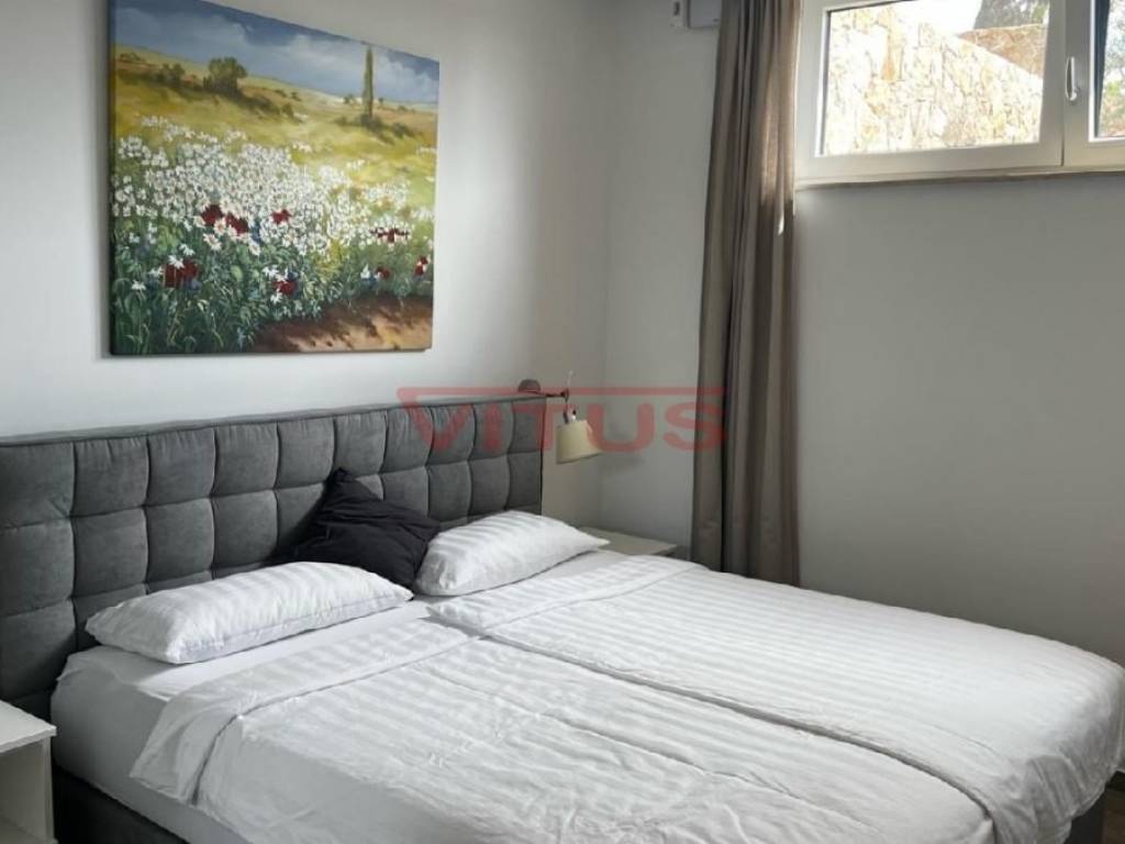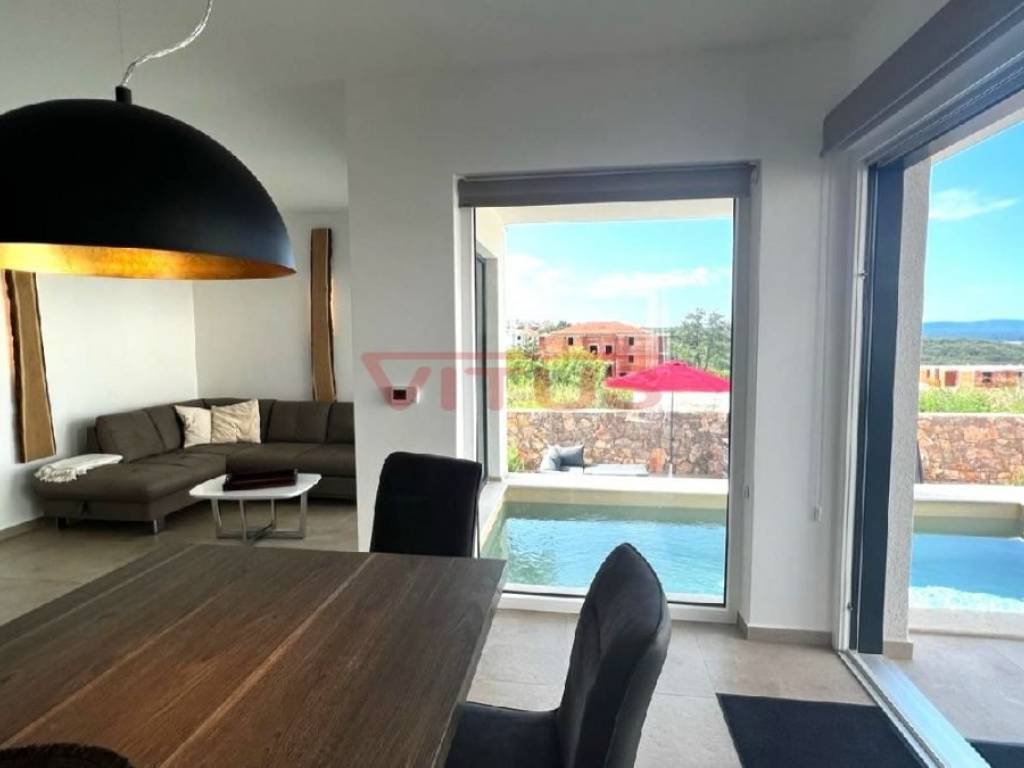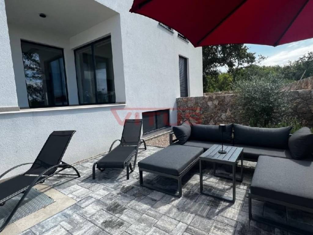 Njivice, island of Krk! Duplex apartment of 125 m2 is located in the basement and ground floor of an apartment building built in 2022. In the basement there are three bedrooms, two bathrooms and two storage rooms, while on the ground floor there is a kitchen with a dining room and a living room. The living room leads to a spacious covered terrace with a swimming pool and a 108m2 garden with a sundeck and a comfortable area for relaxation. High-quality construction and equipment that includes security front door, air conditioning in every room, underfloor heating in the entire apartment, high-quality sanitary ware and floor coverings and two parking spaces. The apartment is fully furnished and ready to move in, and is located in a sought-after location only 500 m from the sea!