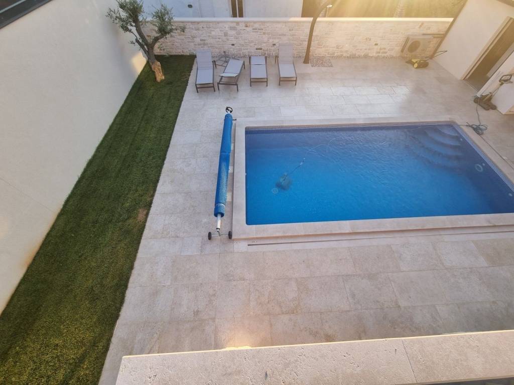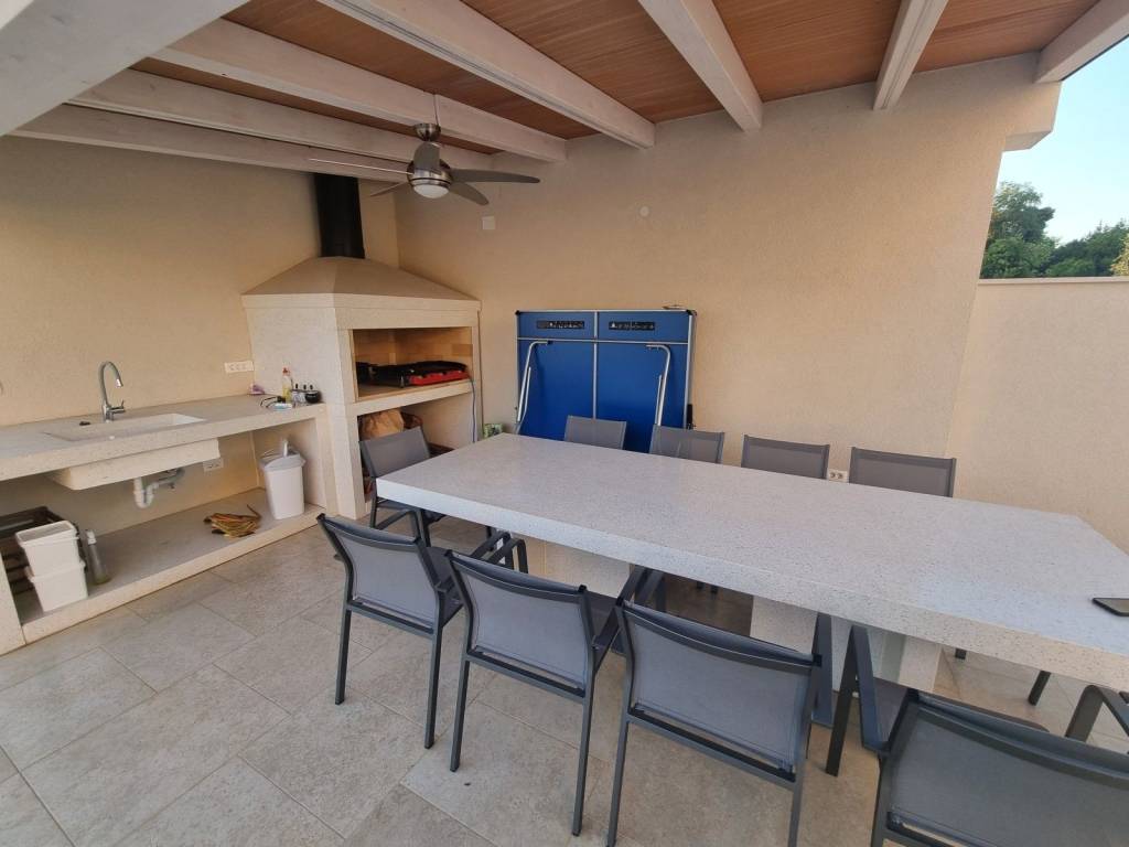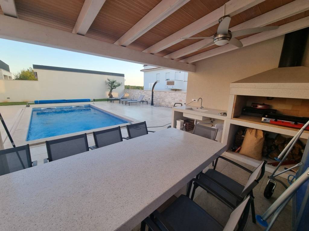 There is a fully furnished and equipped villa with a swimming pool near Savudrija and its beaches. With a size of 194m2 and situated on a fenced plot of 650m2, this villa offers ample space for relaxation and entertainment.