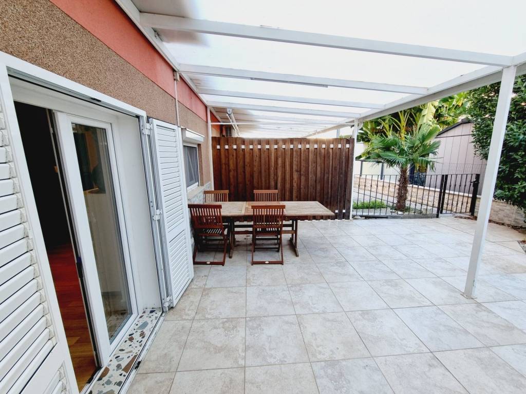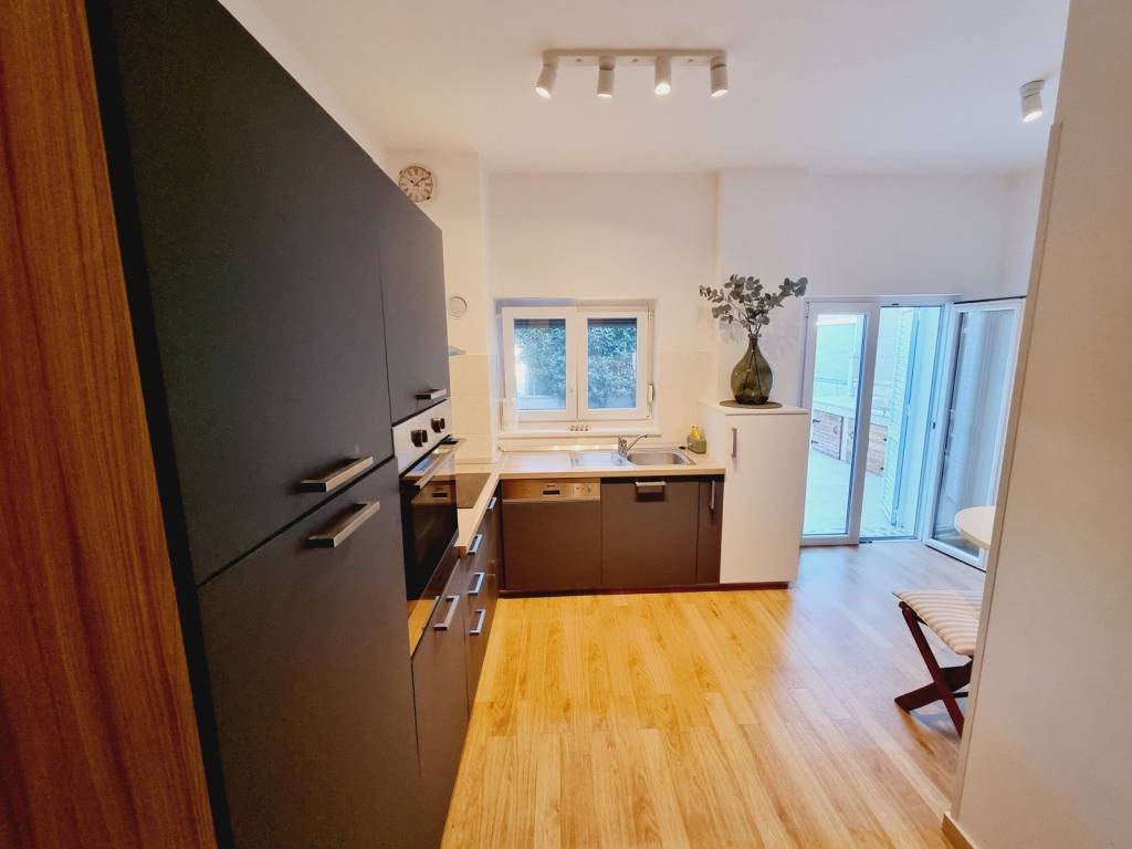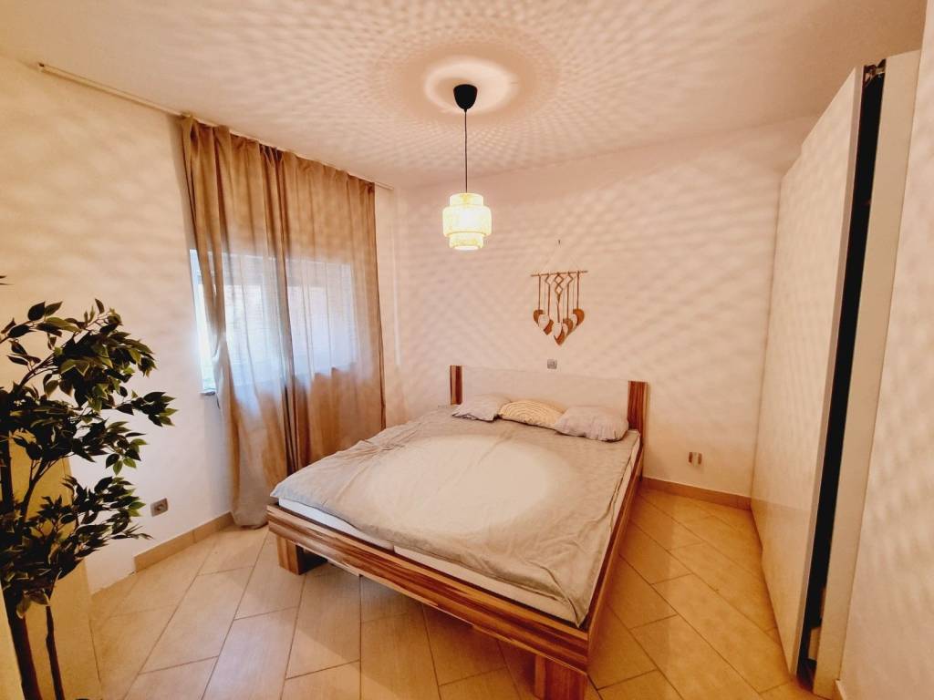 This apartment covers an area of 62m2 and consists of an entrance hall, two bedrooms, a bathroom, a kitchen and a living room that leads to a beautifully landscaped 18m2 yard. The yard is paved and easy to maintain, and includes a summer kitchen.