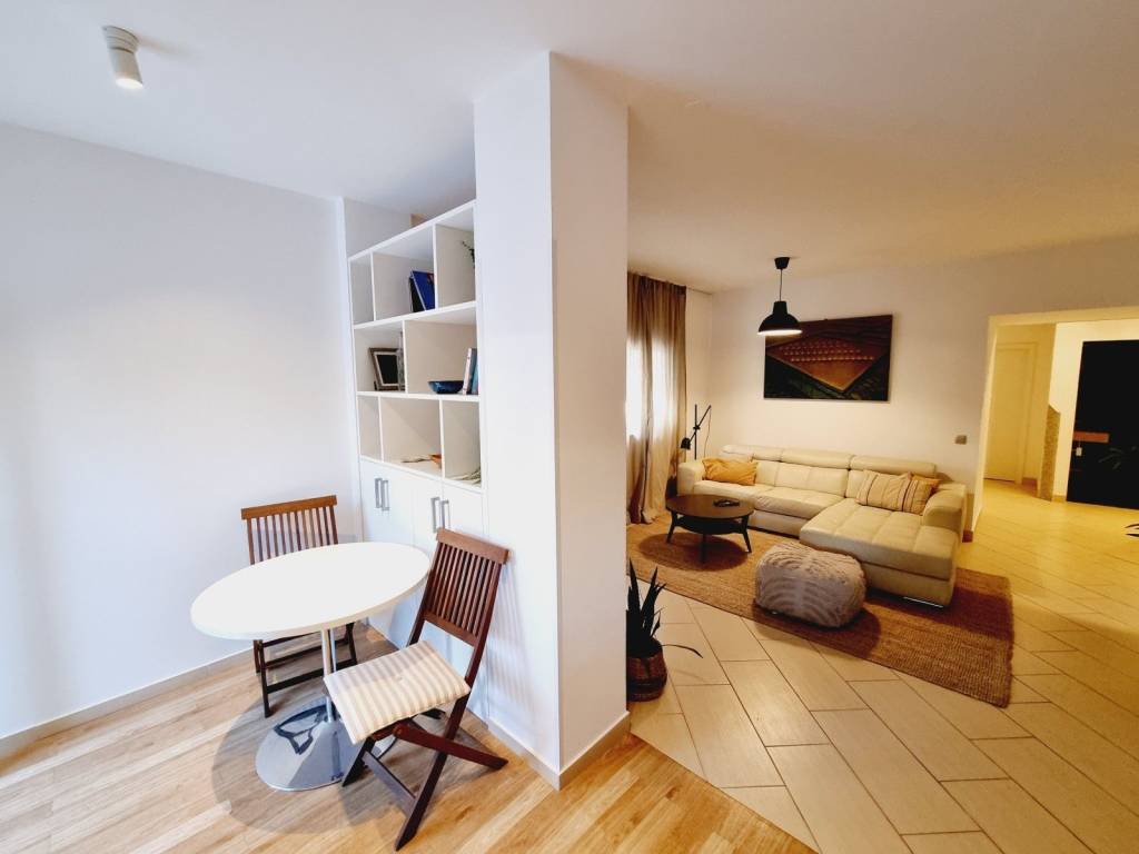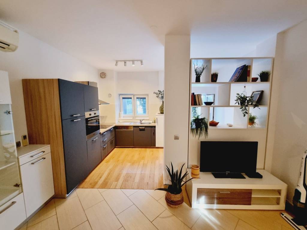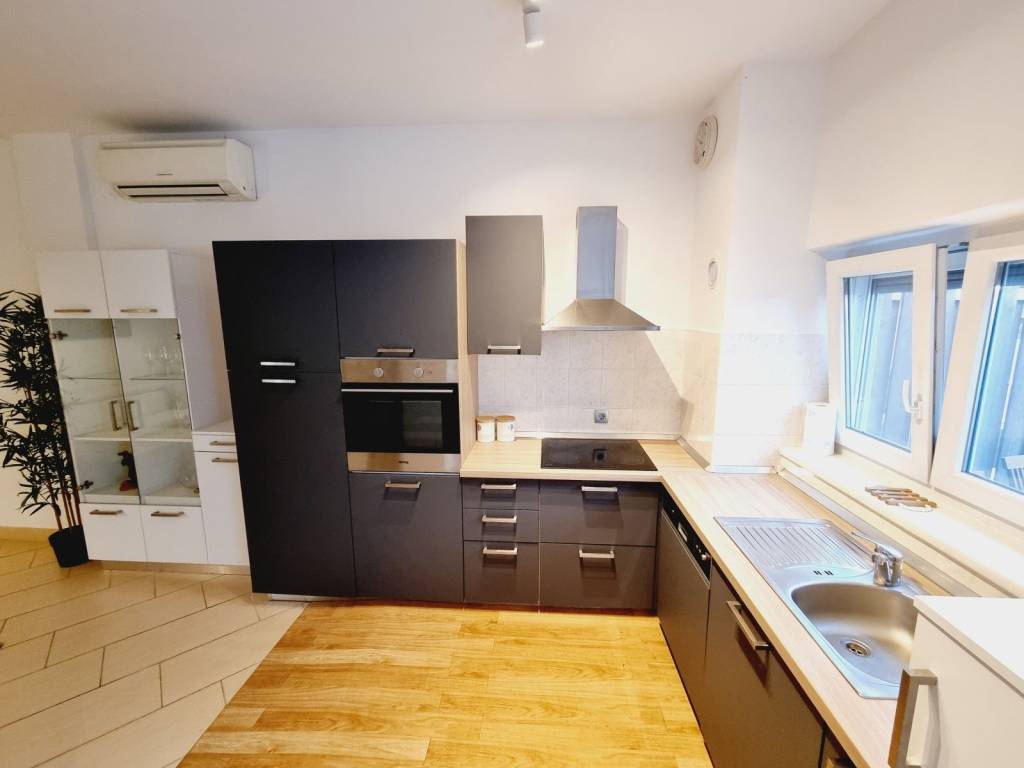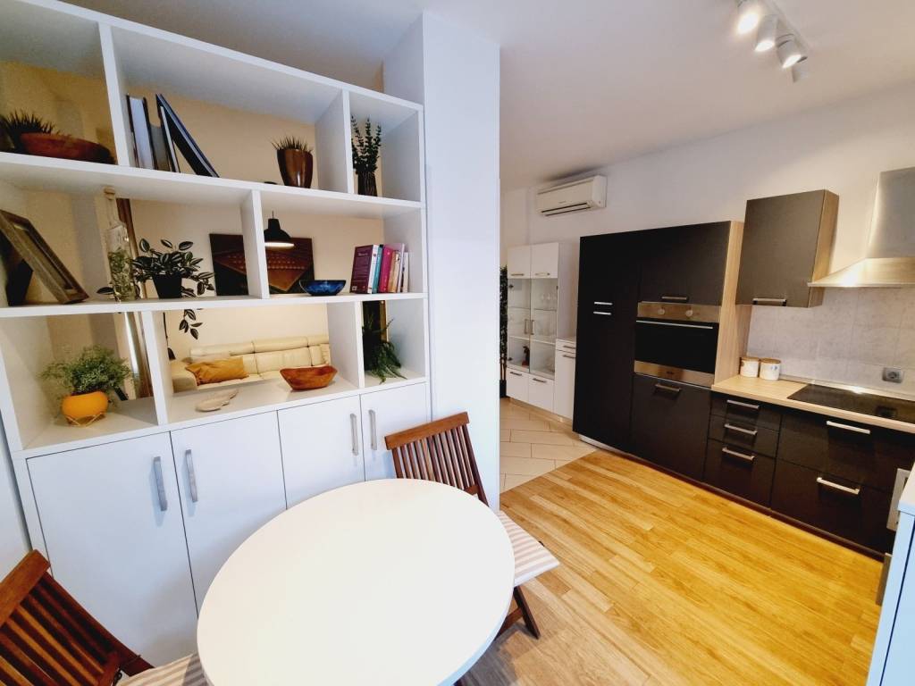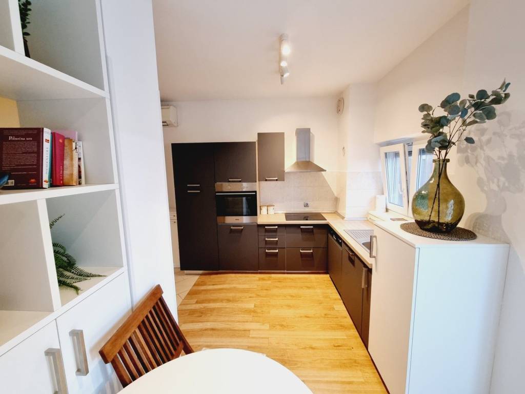 One of the main advantages of this apartment is that it is sold fully furnished with custom-made furniture, while the kitchen is equipped with all necessary appliances. Heating is via air conditioning, and the apartment also comes with a storage space in the basement and one parking space in the fenced part of the building.