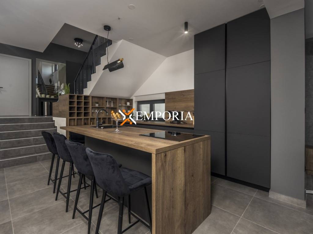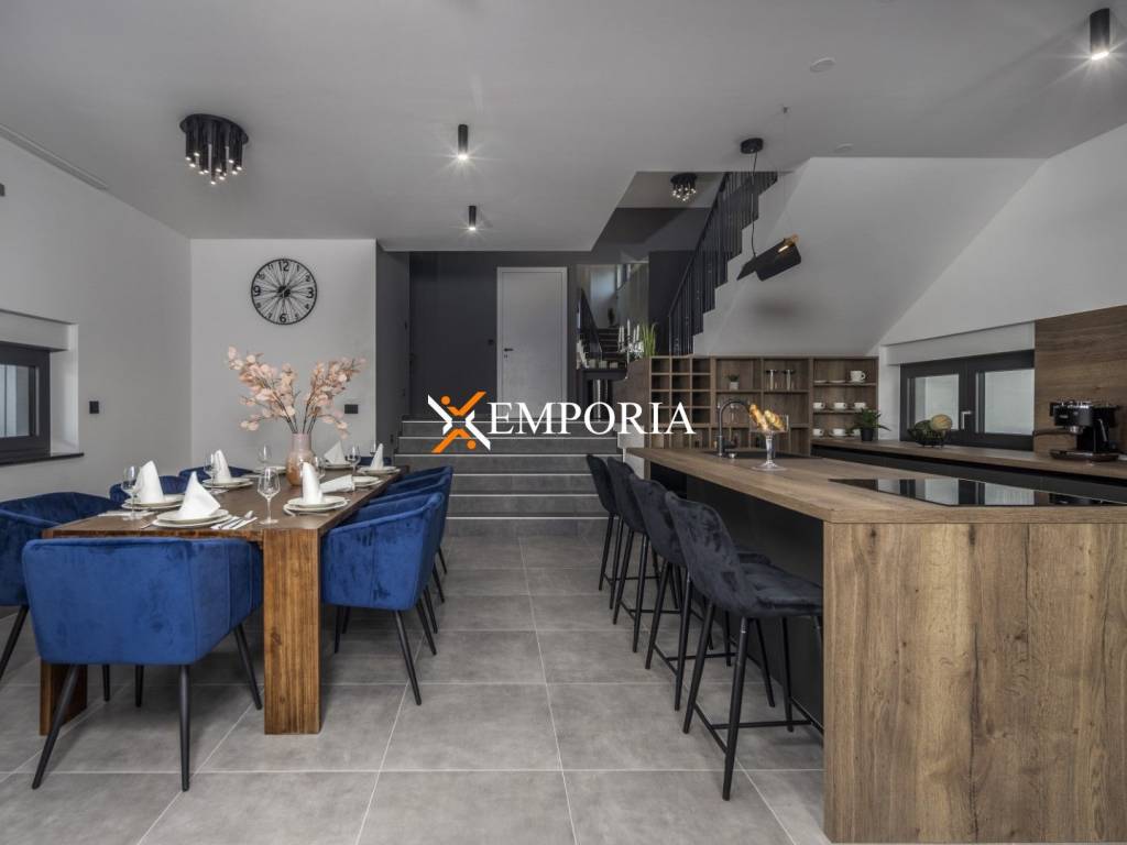 The area of the house is 204.94 m2. The area of the pool is 36 m2. The plot on which the house is built has an area of 666 m2. A total of 3 parking spaces are available, one of which is in the garage.