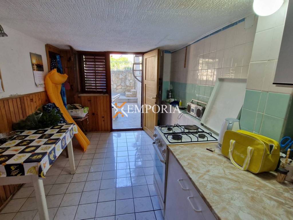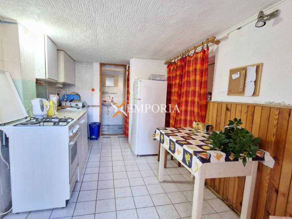 A four-bedroom apartment in Maslenica is for sale. It is a two-story apartment in the basement and on the ground floor. The layout of the rooms in the basement consists of a kitchen with a dining room and a toilet. The layout of the rooms on the ground floor consists of a hallway, four bedrooms, a bathroom and a covered terrace. The net usable area of the described premises is 76,16 m2. In addition to the apartment, there is a storage room and a garden. The total net area of the apartment with all additional parts is 82,28 m2. The distance of this property from the sea is 180 m, while the distance from the center of Maslenica is 600 m.