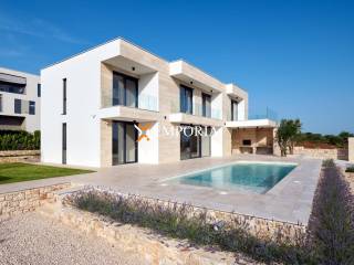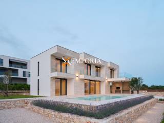 For sale is a modern newly built villa located in Sveti Filip i Jakov, with a total area of 303.07 m2, including a swimming pool. The villa is set on a plot of 786 m2 and offers an excellent sea view. This is a high-standard property with a functional layout, ideal for family living or tourist rental.