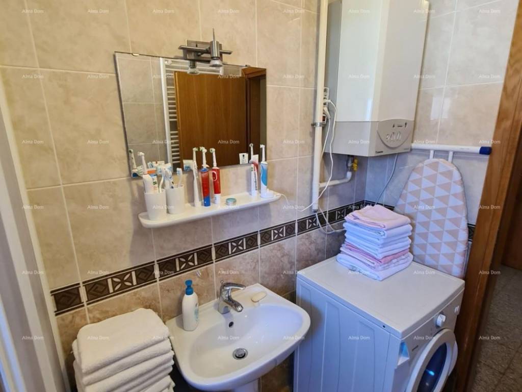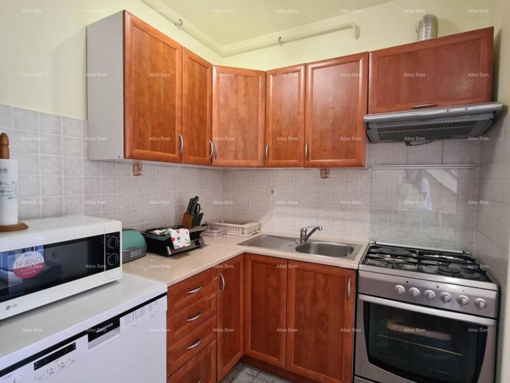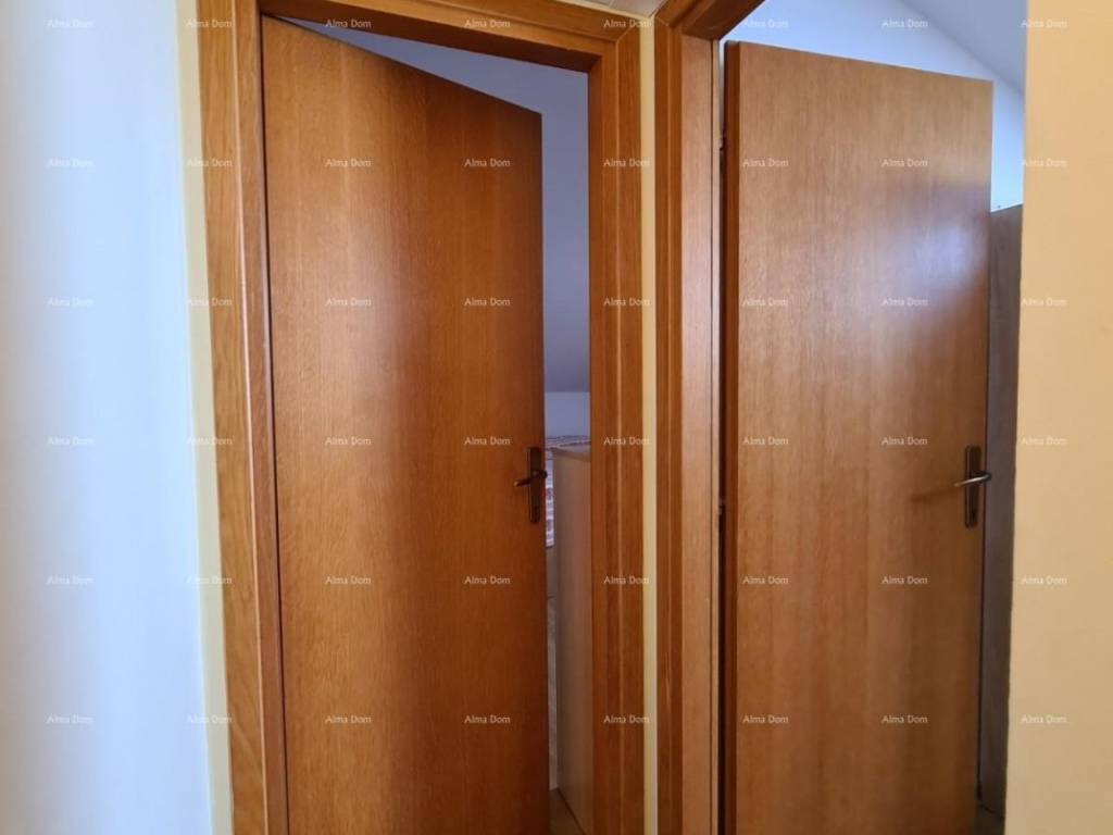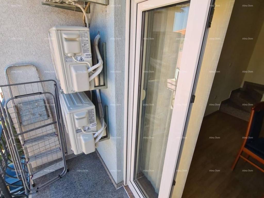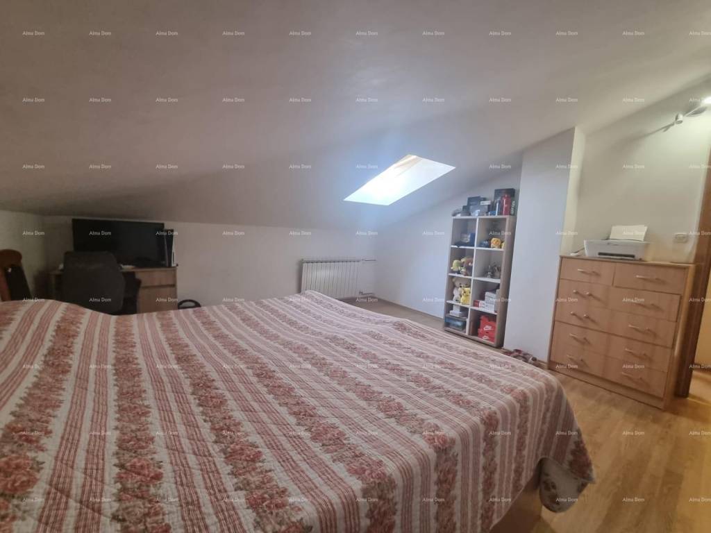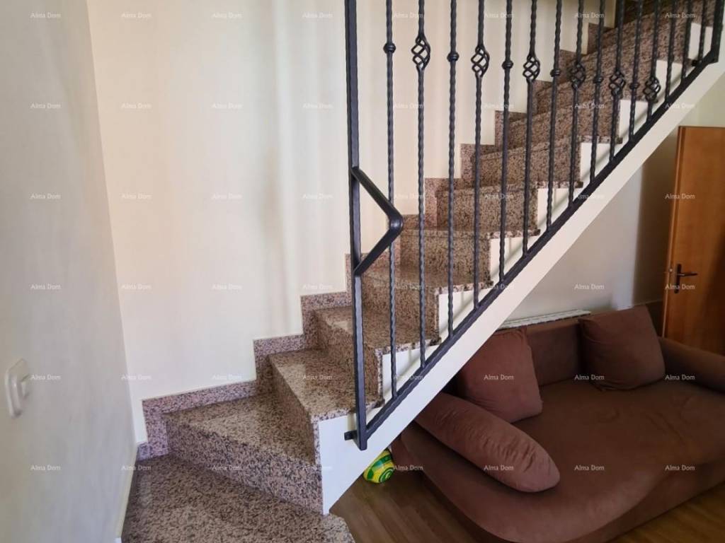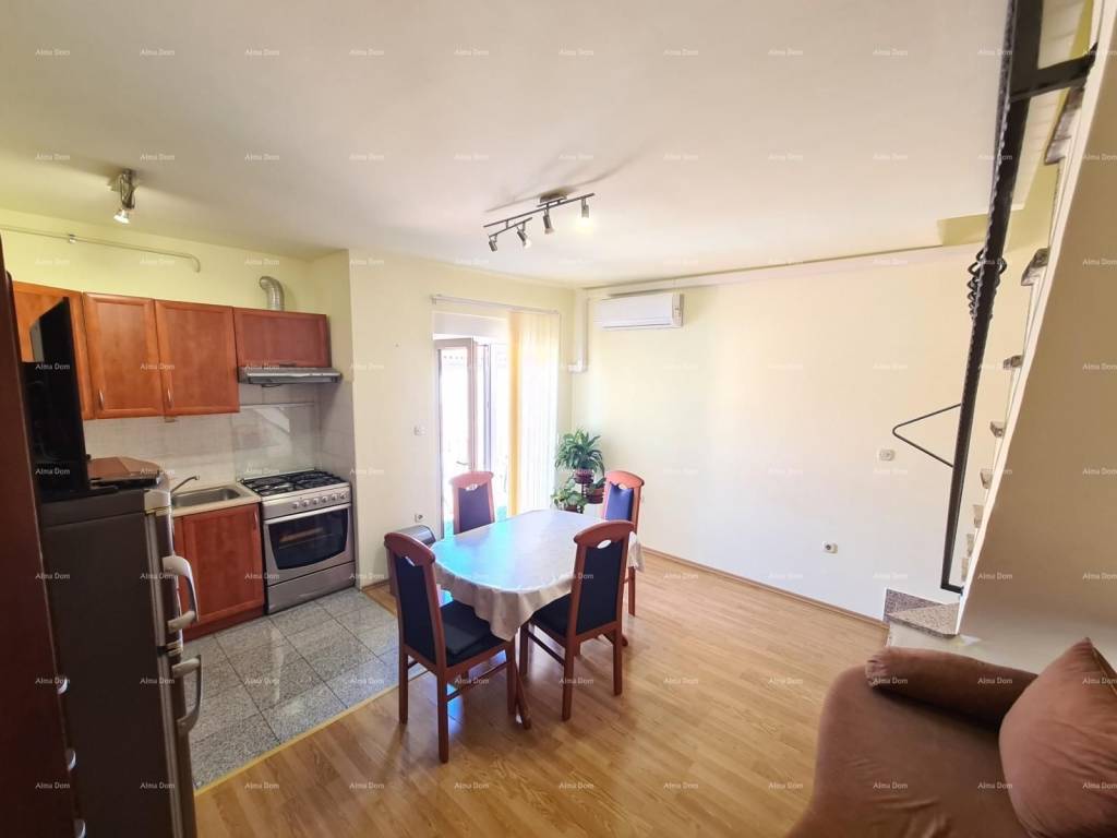 We offer an apartment on the 3rd floor of an older new building. The apartment is on two floors and consists of an entrance hall, bathroom, bedroom, kitchen with living room and dining room, and a terrace. Internal stairs from the living room lead to the upper part of the apartment where there are two bedrooms. Gas central heating. Air conditioning in the living room. Furnished.